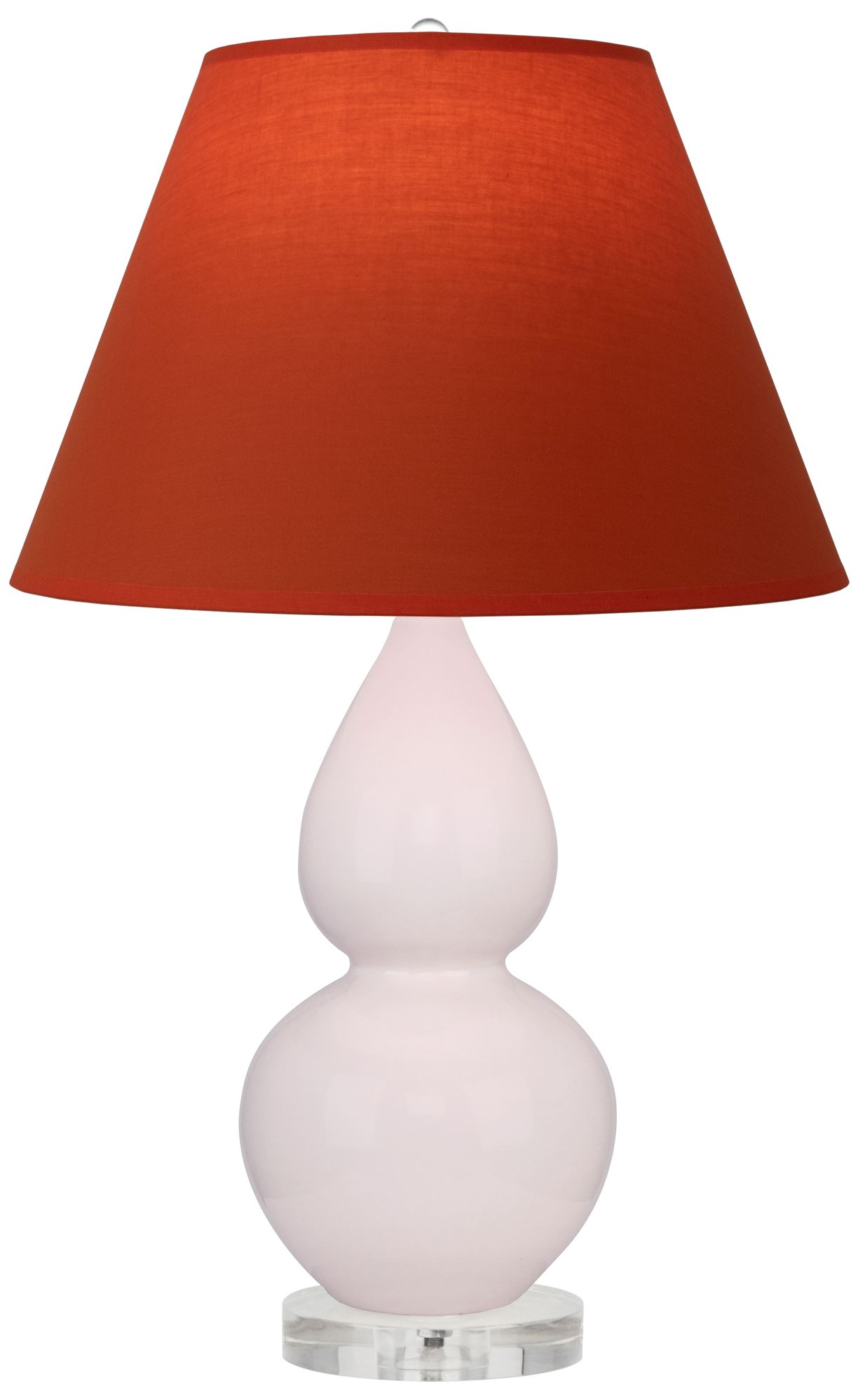 Small Double Gourd 22.75"H Rose Water Brass Lamp w/ Pearl Dupioni Shade