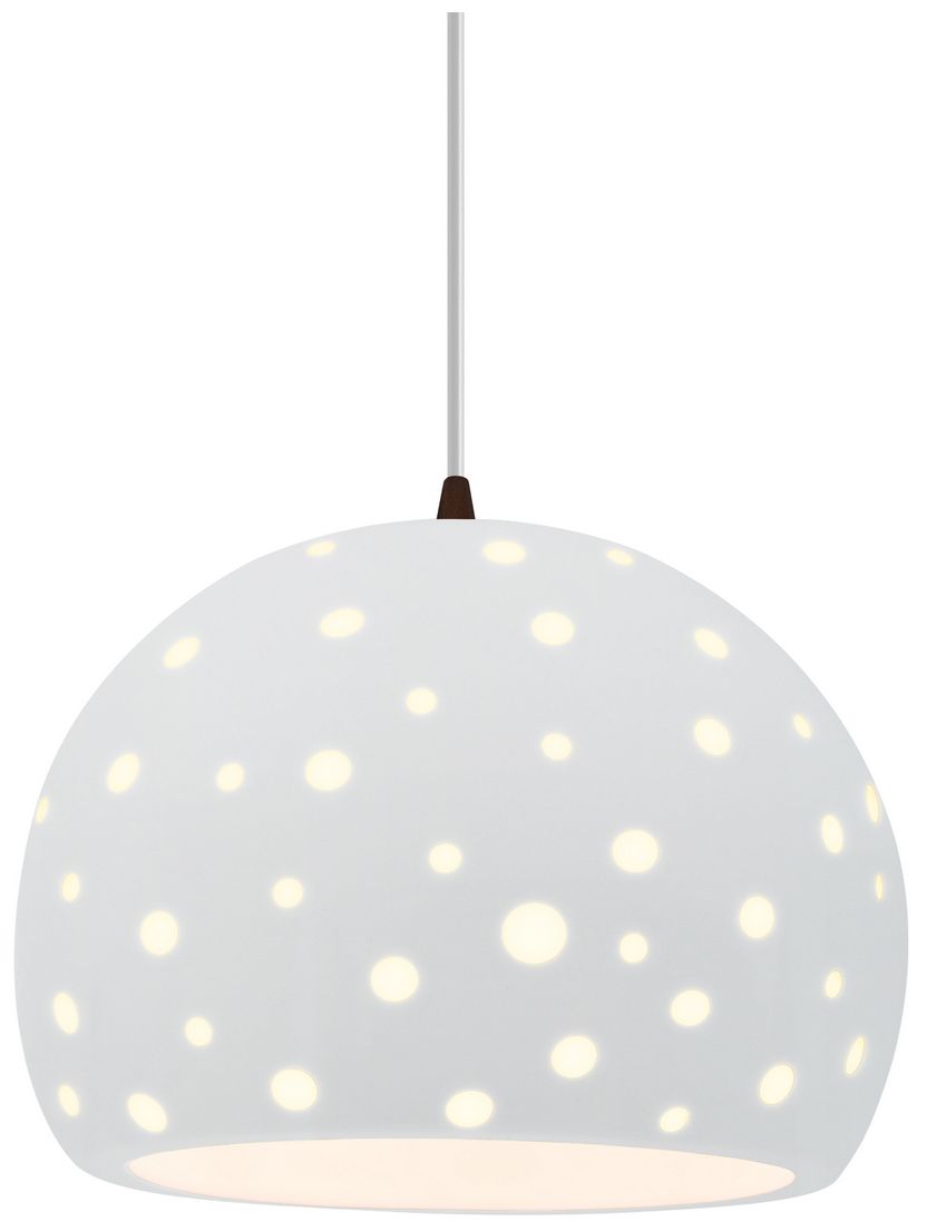 Perforated Globe 7"W Matte White, Dark Bronze Pendant - White Cord