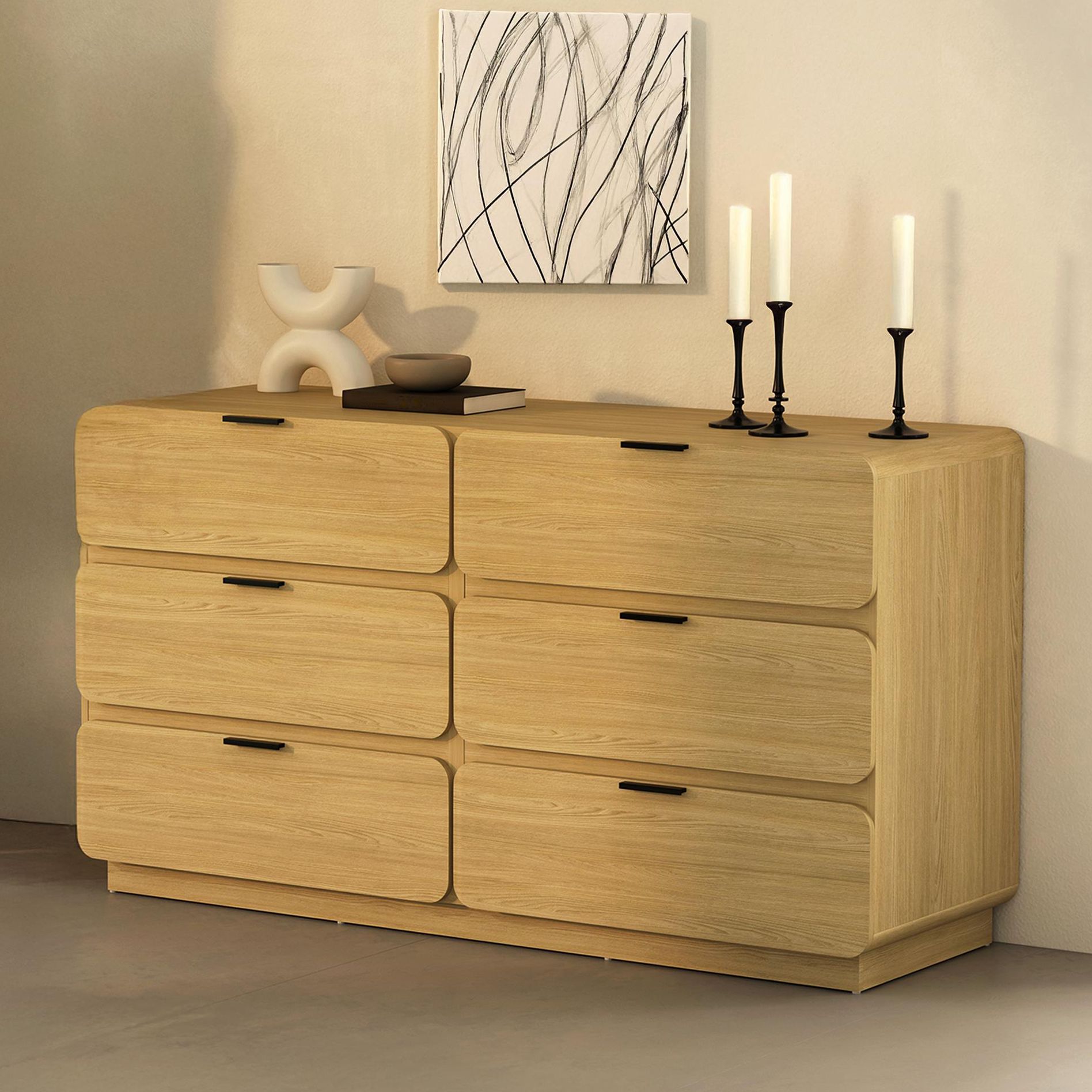Chrystie Contemporary Modern 60" Dresser in Natural (6-Drawer)