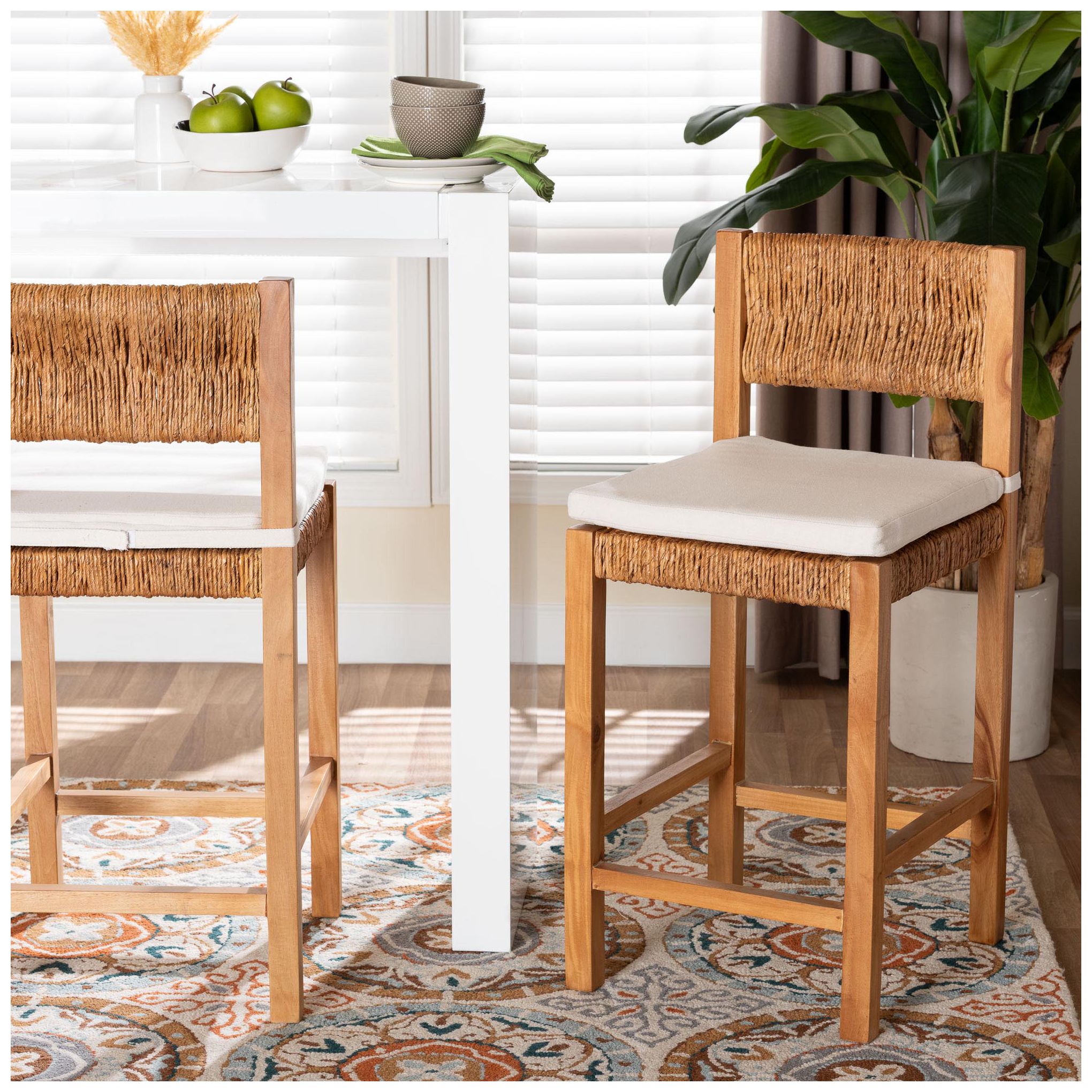 bali & pari Pava Woven Seagrass Counter Stool - With Textured Back