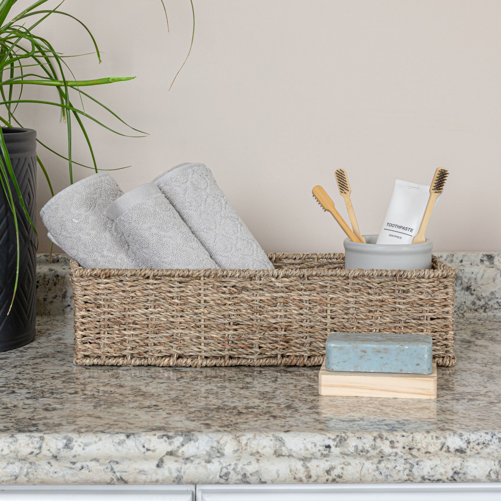 Handwoven Seagrass Rectangular Storage Basket, Natural