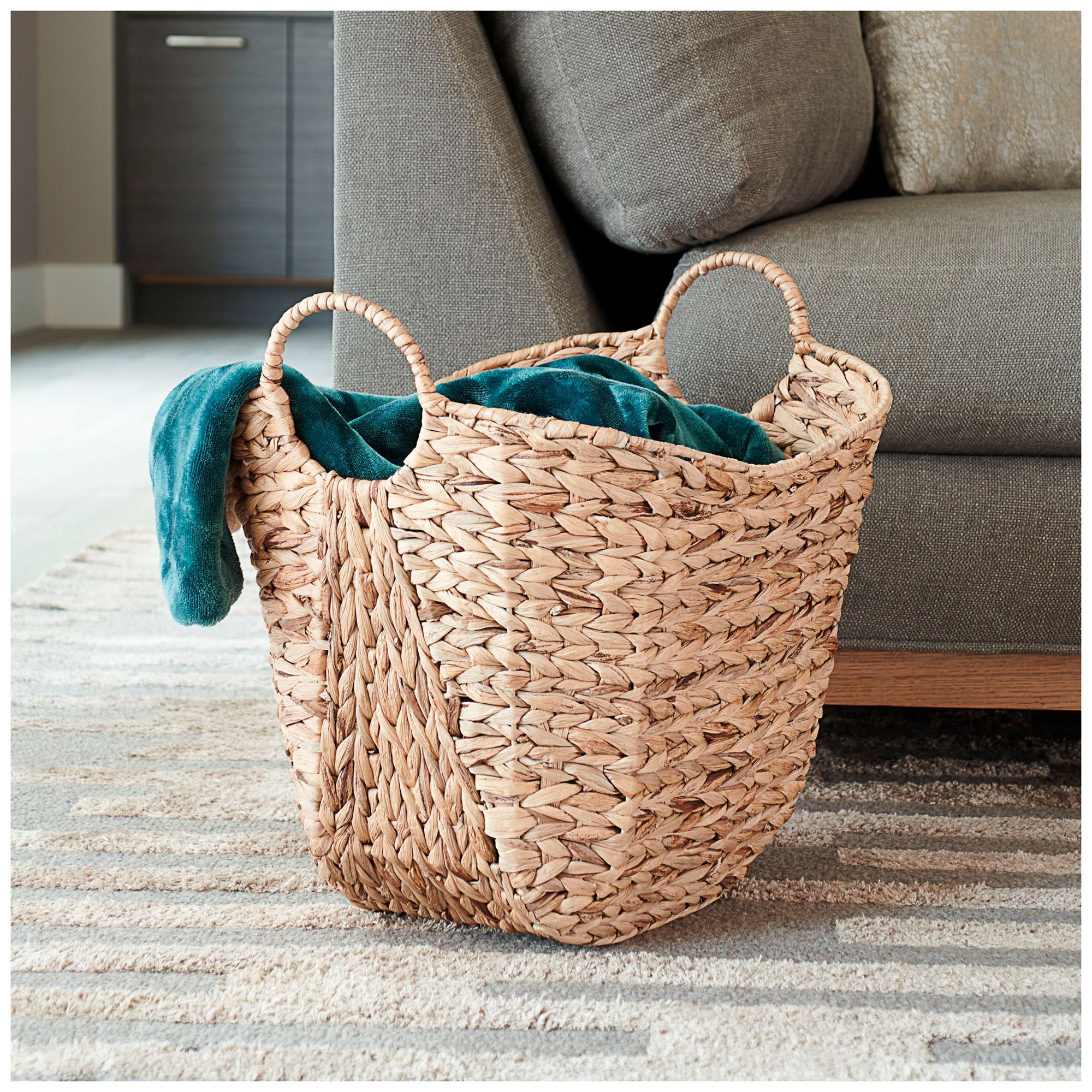 Tall Wicker Floor Basket, Woven Decorative Basket with Handles