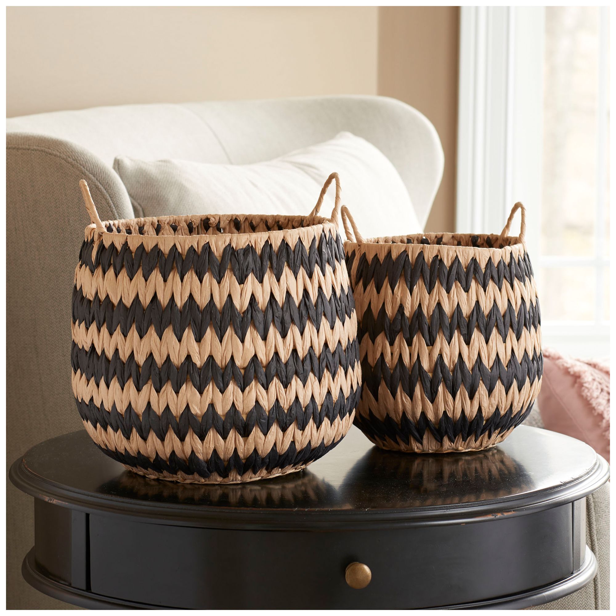 Woven Basket, Set of 2 Decorative Baskets with Black Pattern