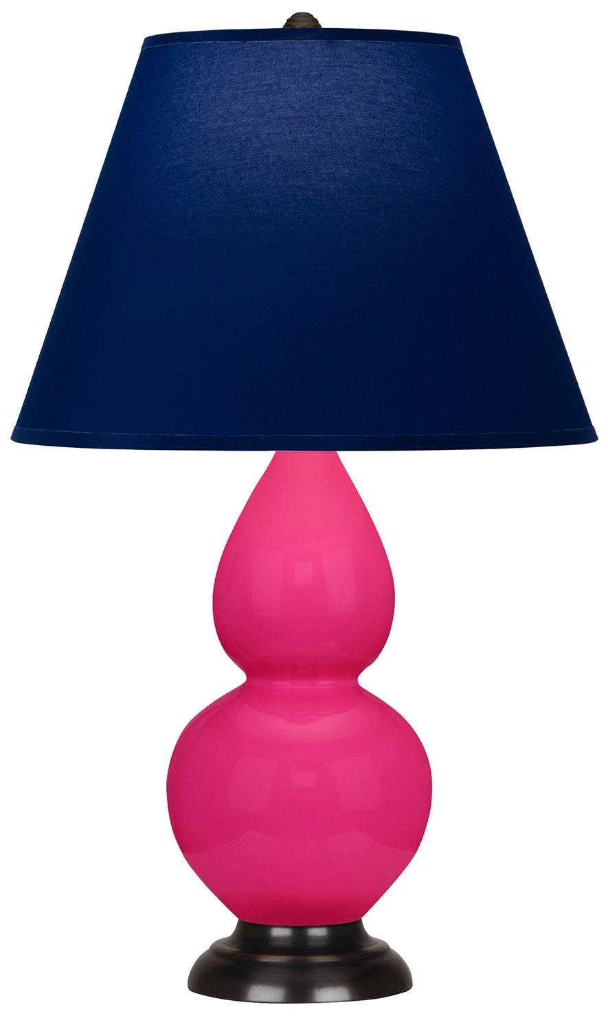 Double Gourd 23"H Razzle Rose And Bronze Lamp w/ Navy And Gray Shade