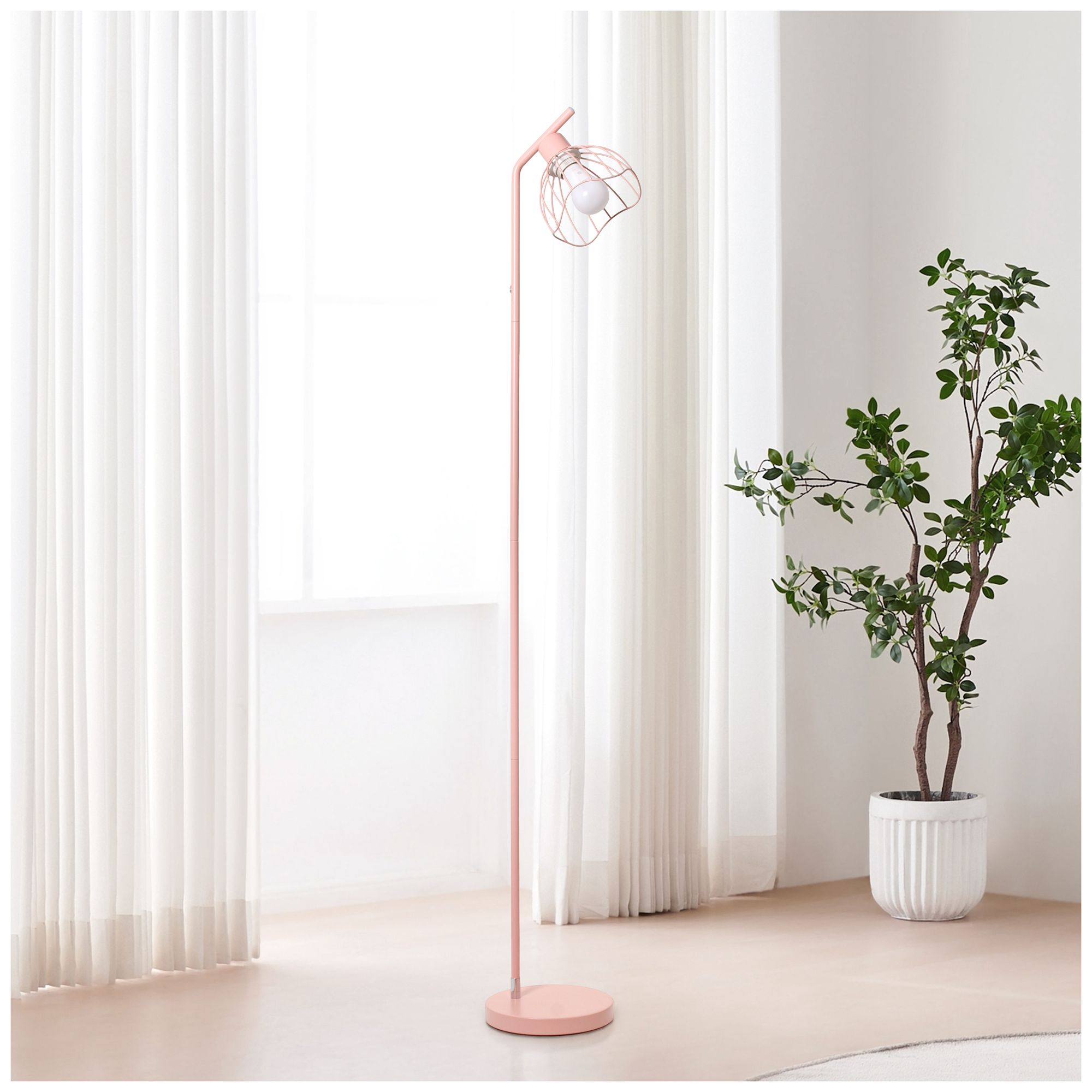 Simple Designs 54.5" Industrial Metal Floor Lamp w Wire Cage Shade, Pink