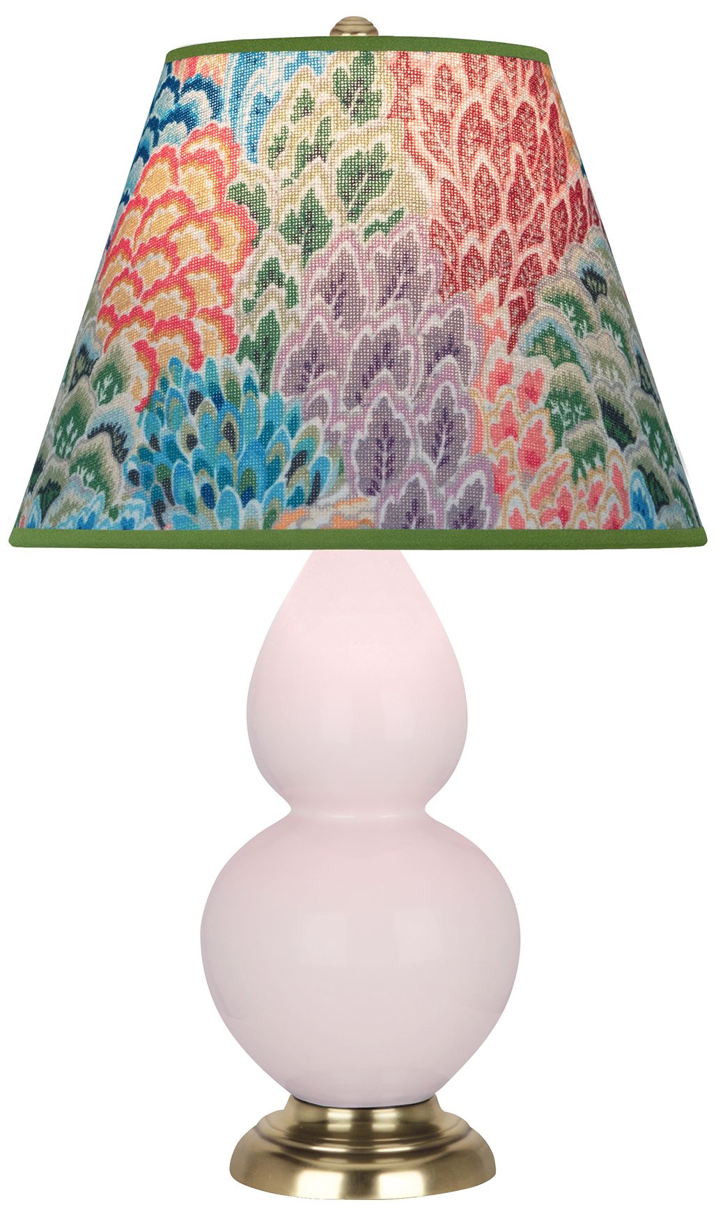 Double Gourd 22.75"H Citron And Brass Lamp w/ Ink And Rose Shade