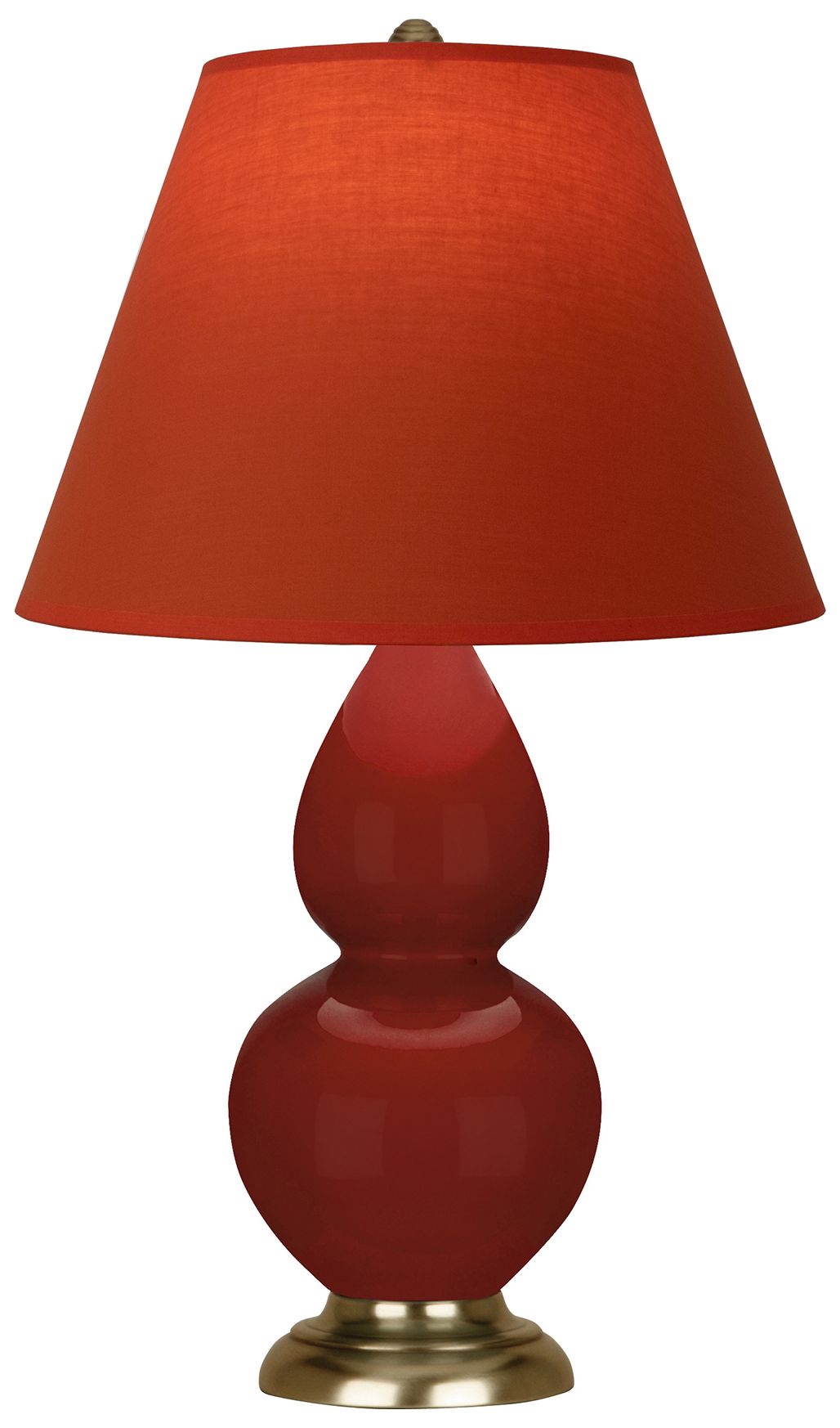 Small Double Gourd 22.75"H Oxblood Antique Brass Lamp w/ Tangerine Shade