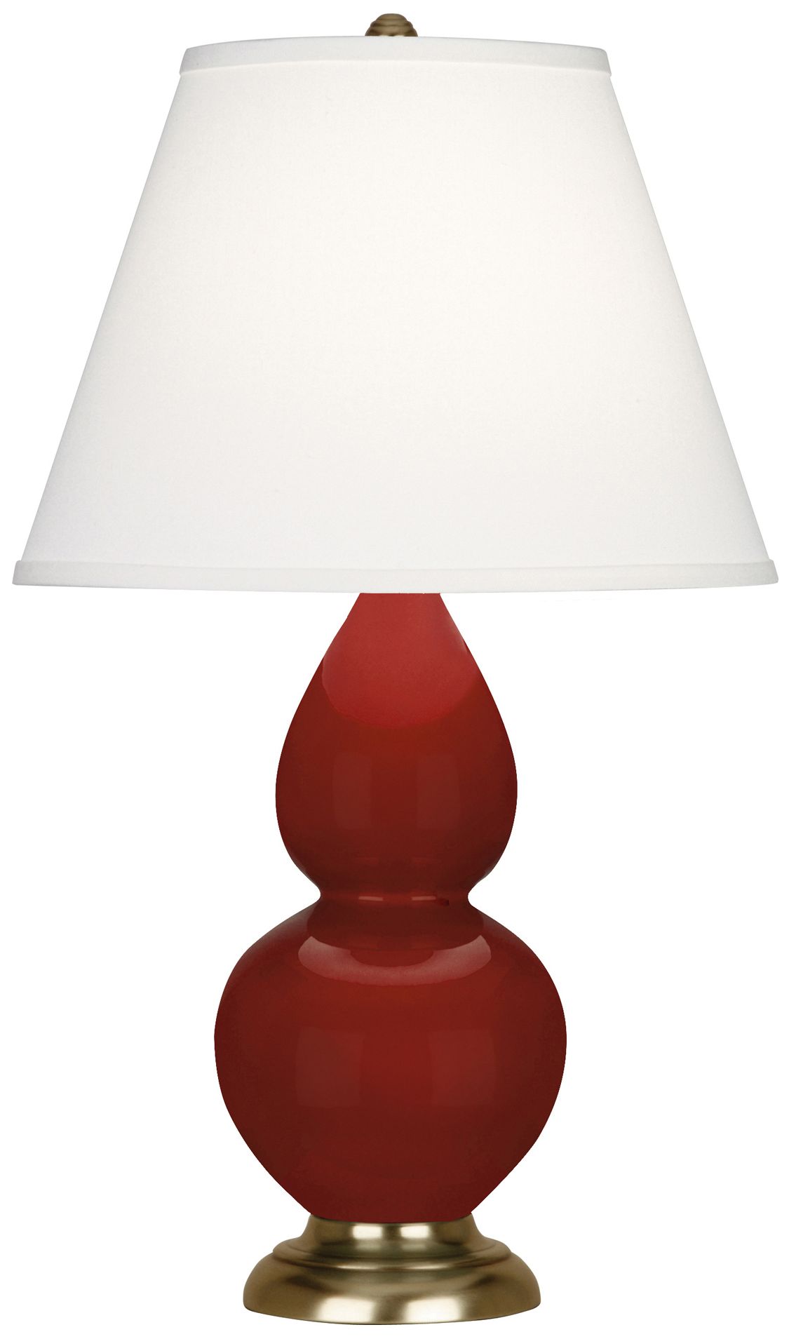 Small Double Gourd 22.75"H Oxblood Brass Lamp w/ Pearl Dupioni Shade