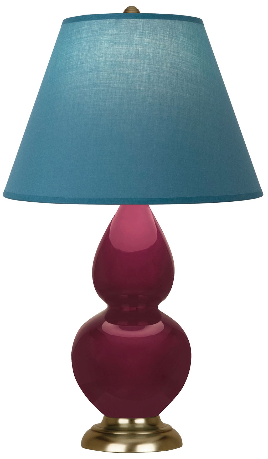 Small Double Gourd 22.75"H Sugar Plum Brass Lamp w/ Bright Blue Shade