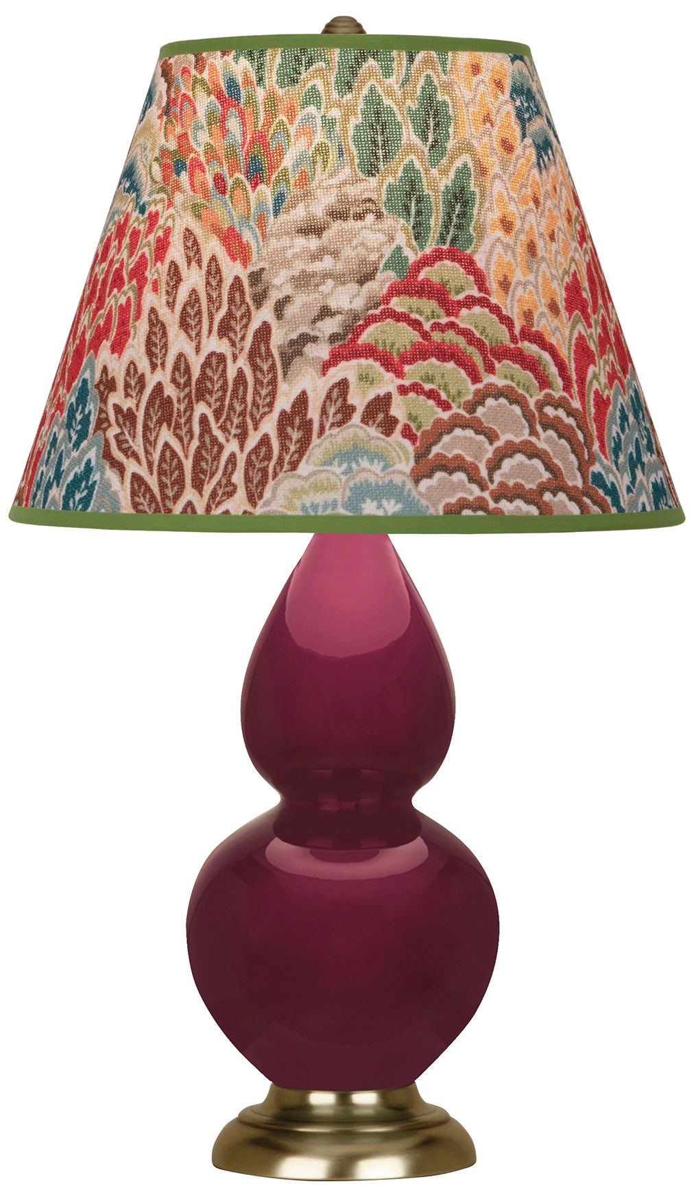 Double Gourd 31"H Sugar Plum Glazed Brass Table Lamp w/ Pearl Dupioni Shade
