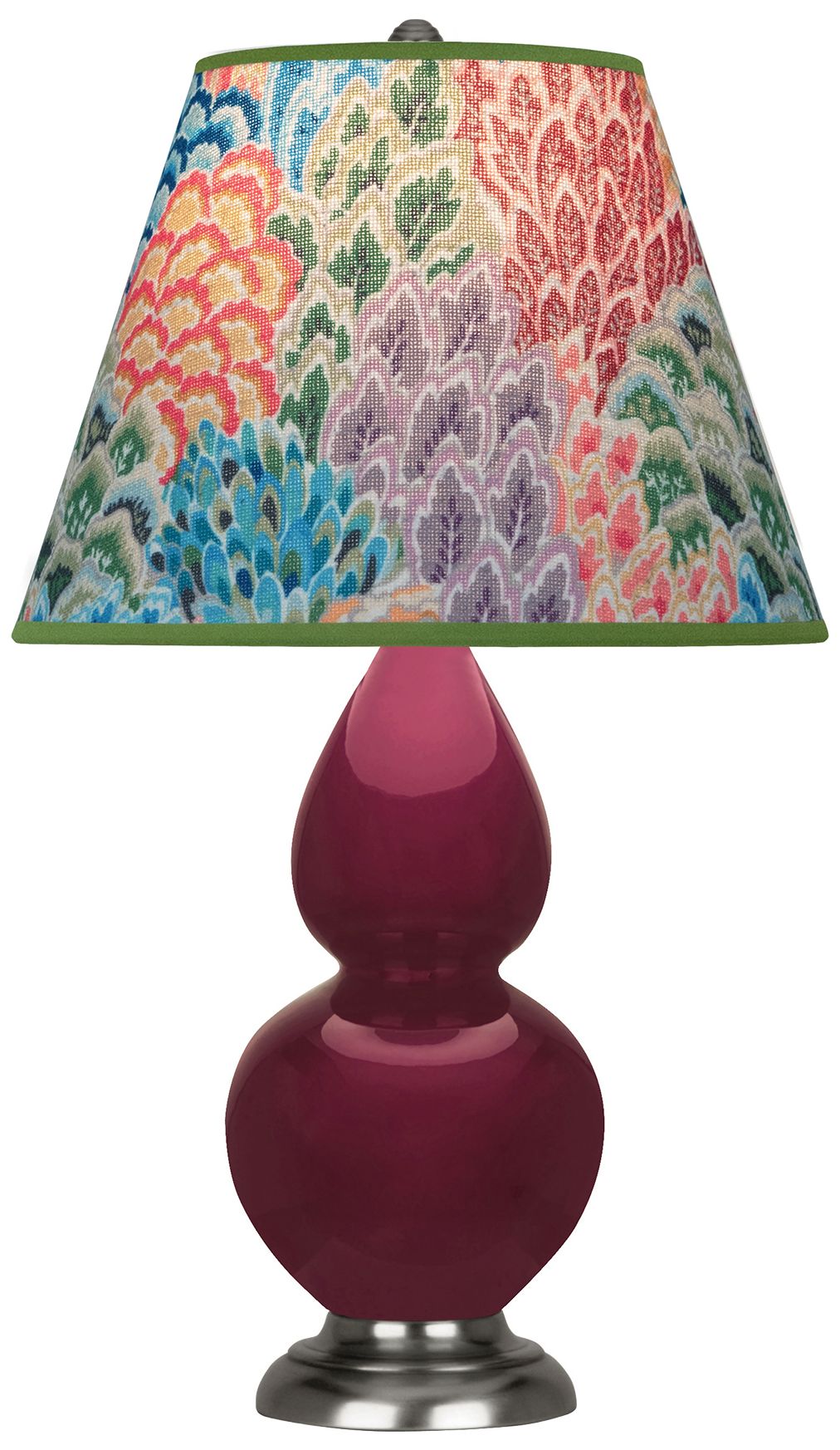Double Gourd 31"H Sugar Plum Glazed Silver Table Lamp - Pearl Dupioni Shade