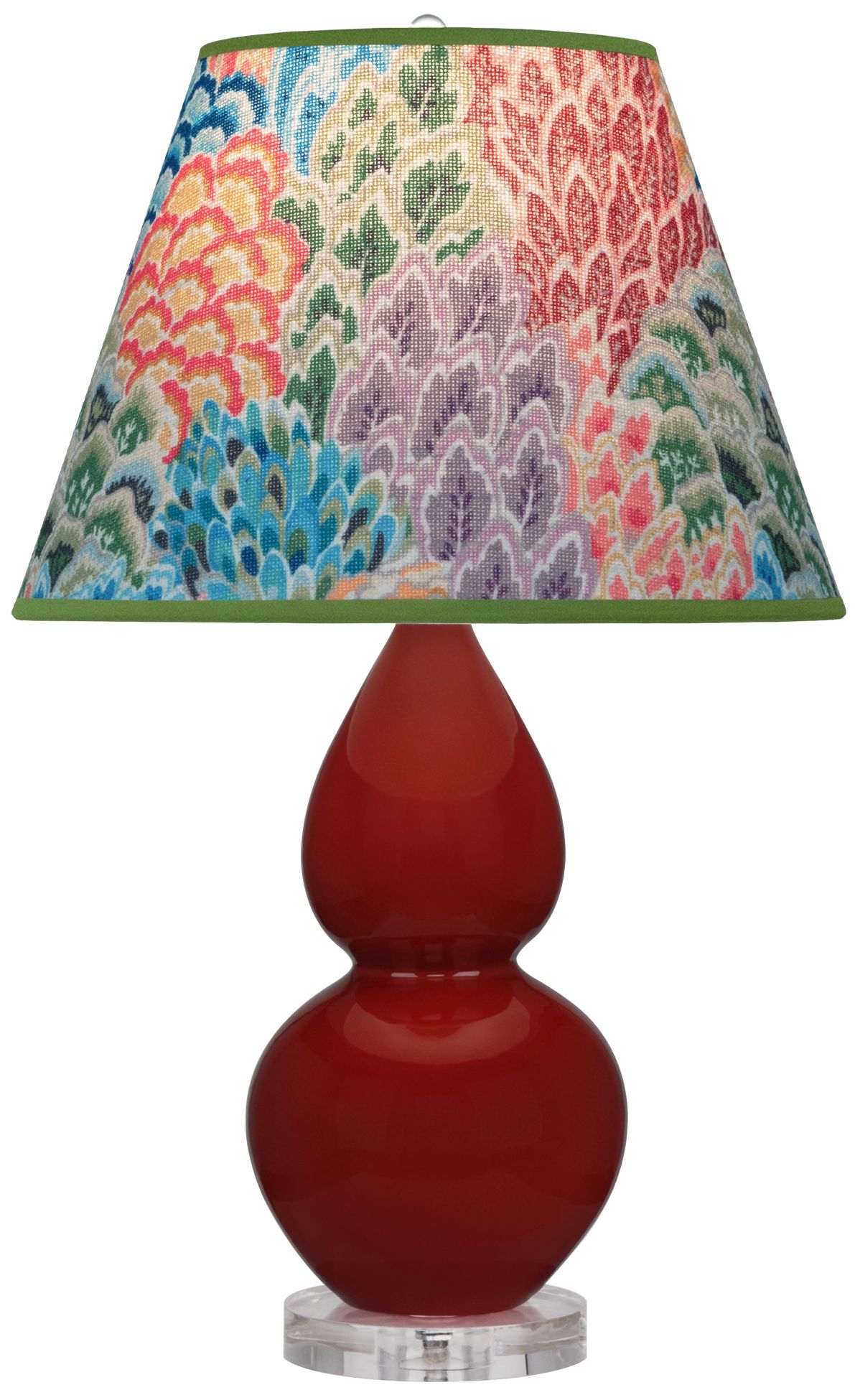 Small Double Gourd 22" High Oxblood Lucite Lamp w/ Spring Floral Shade