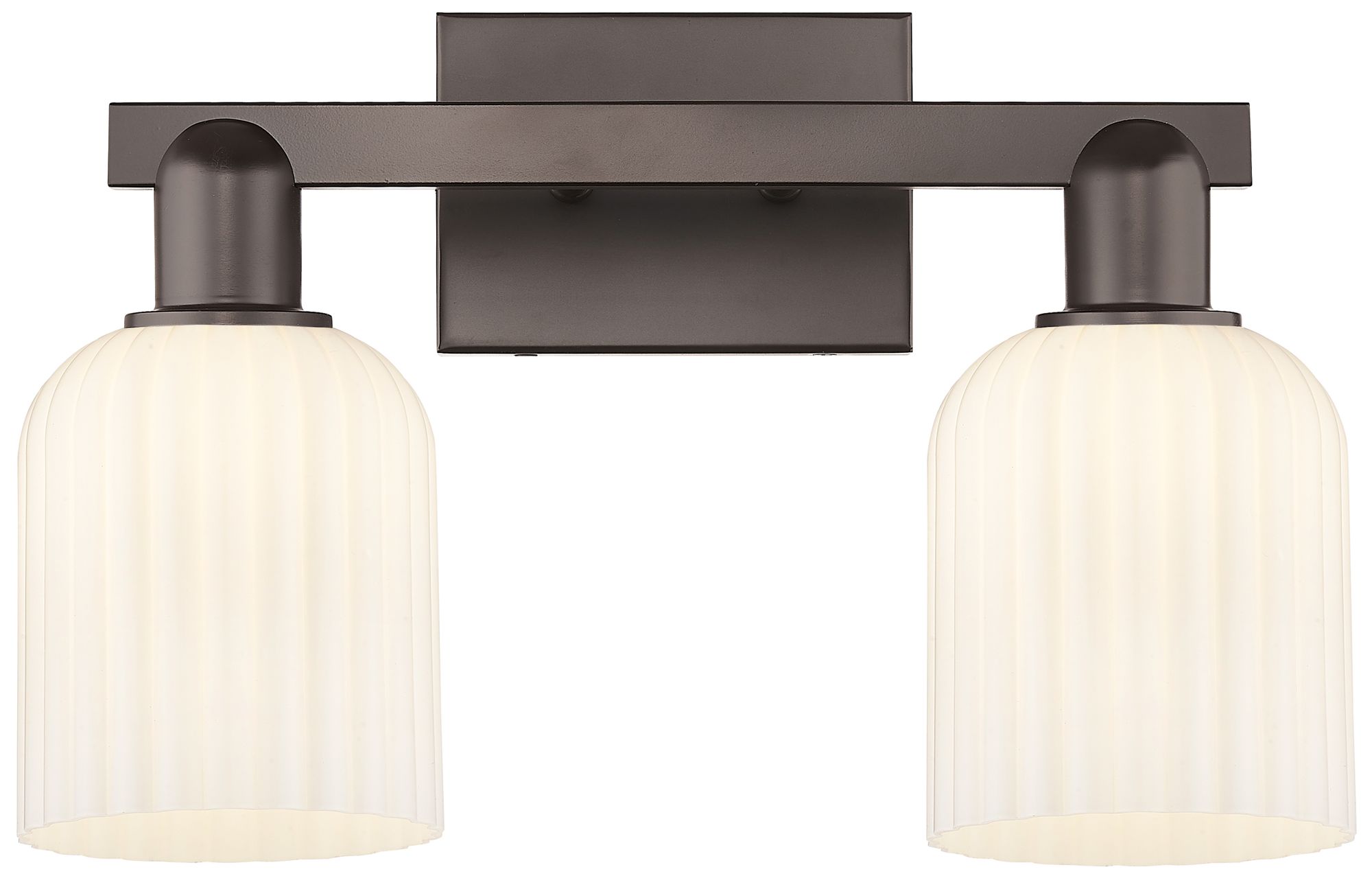 Bridal Veil 16"W 2-Lt Oil Rubbed Bronze Bath-Lt w/ Gloss White Shade