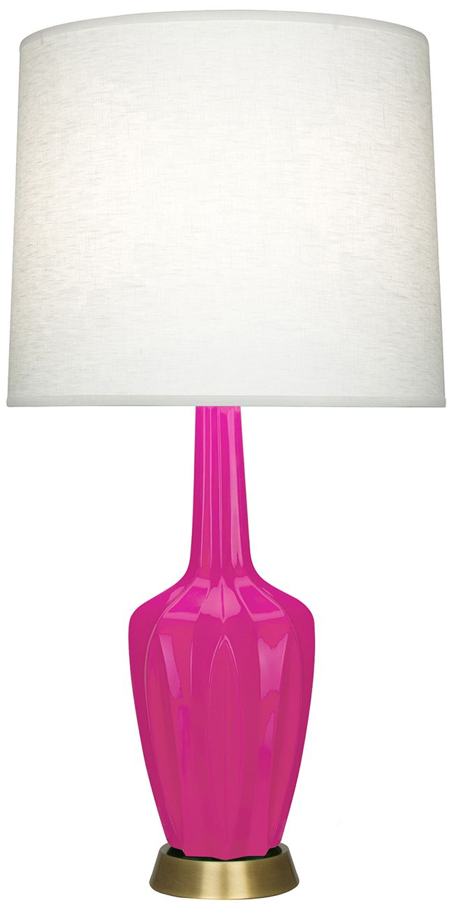 Small Emma 30" High Razzle Rose Brass Accent Lamp with Off White Shade