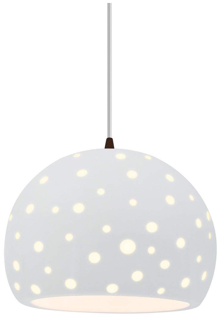 Perforated Globe 7"W White Crackle, Polished Chrome Pendant - Rigid Stem