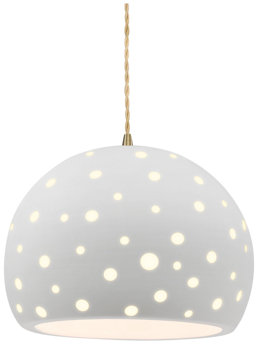 Perforated Globe 12.25"W Bisque, Antique Brass Pendant - Rigid Stem