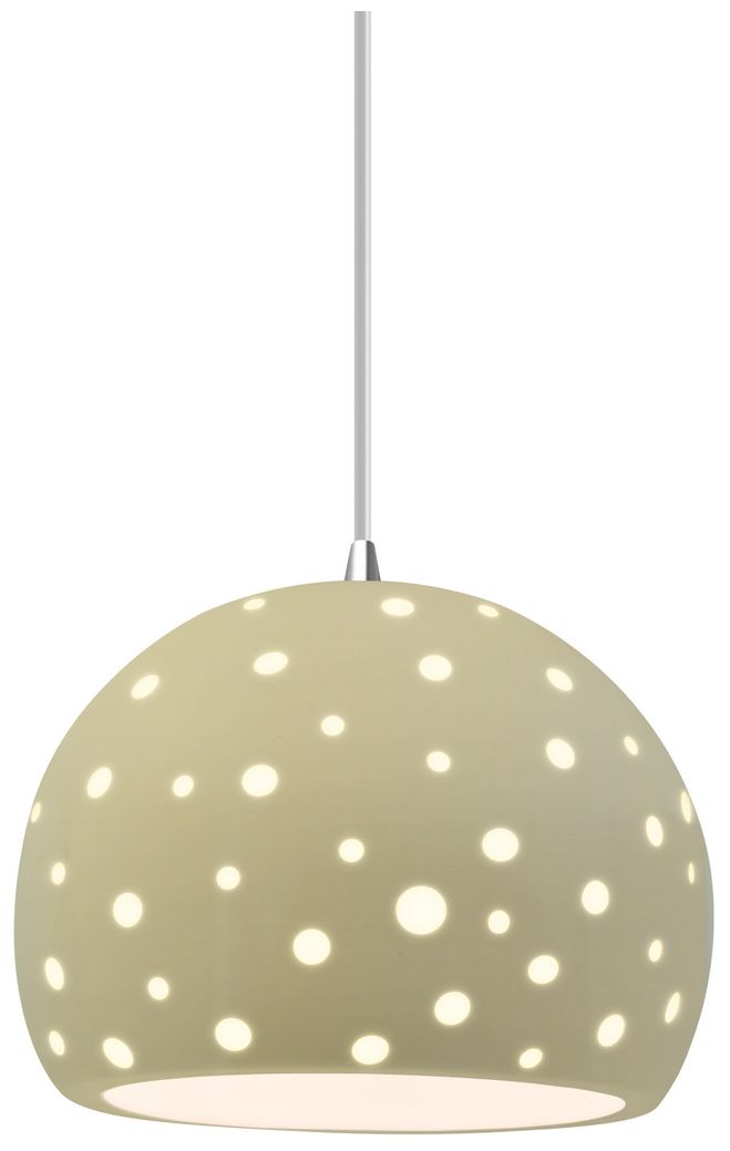 Perforated Globe 12.25"W Bisque, Nickel LED Pendant - Beige Twist Cord