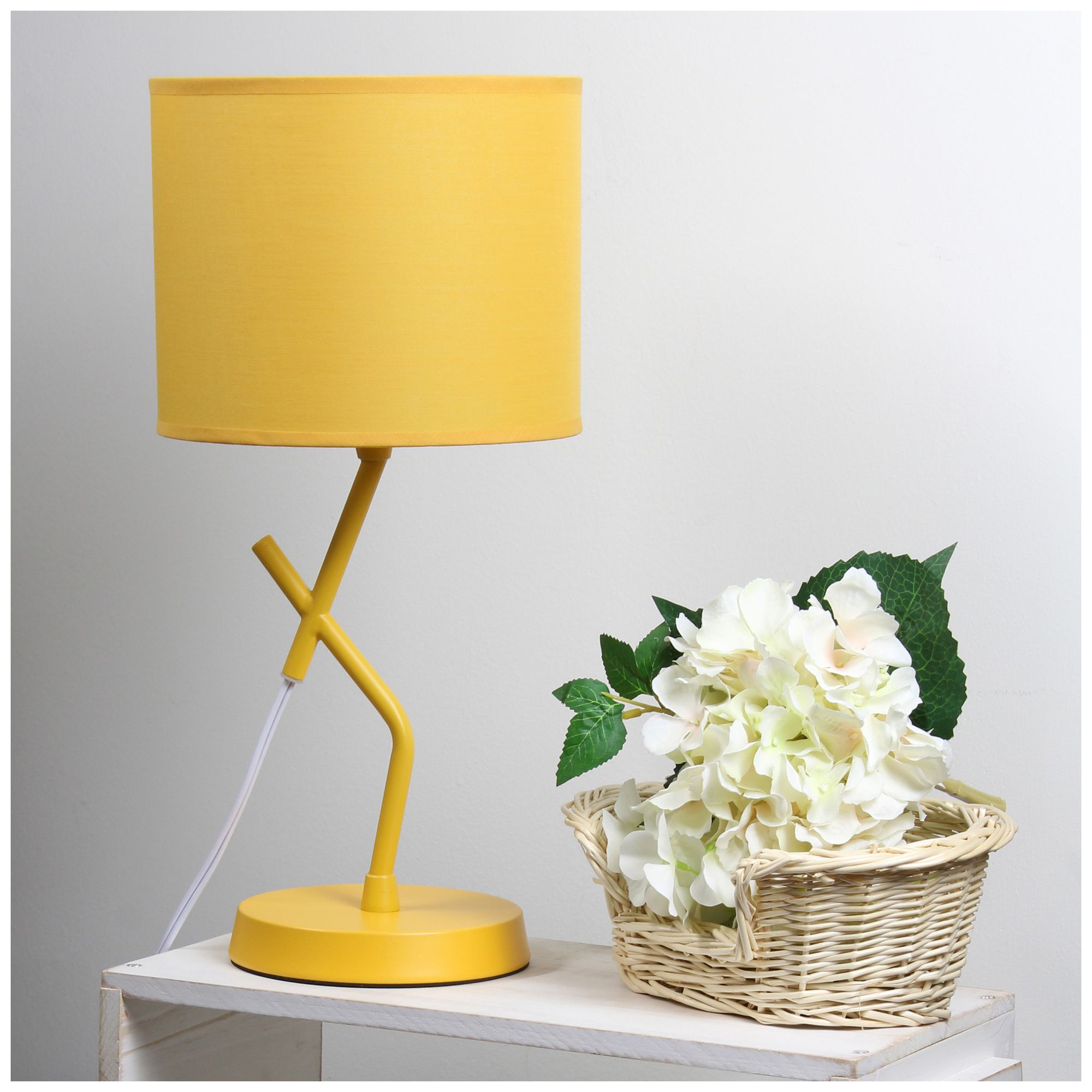 Simple Designs 17.13" Metal Modern Table Lamp, Drum Fabric Shade, Yellow