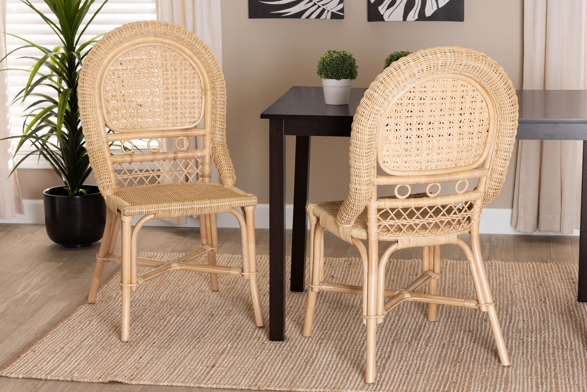 Baxton Studio Chloe Walnut Brown Wood Rattan Dining Chair