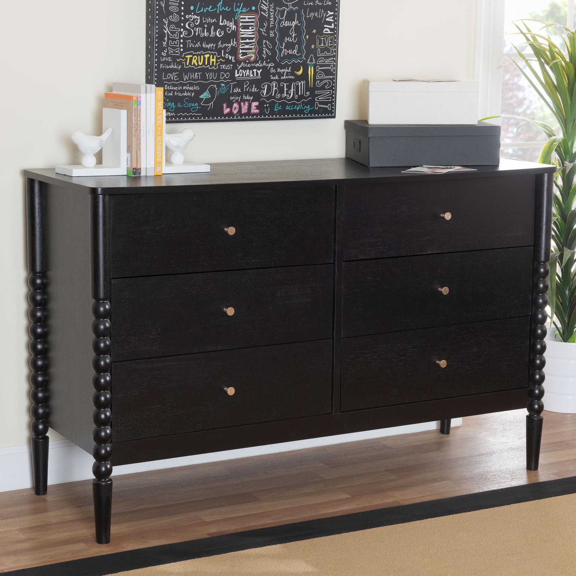 Baxton Studio Lucera 49 3/4" Wide Black 6-Drawer Dresser