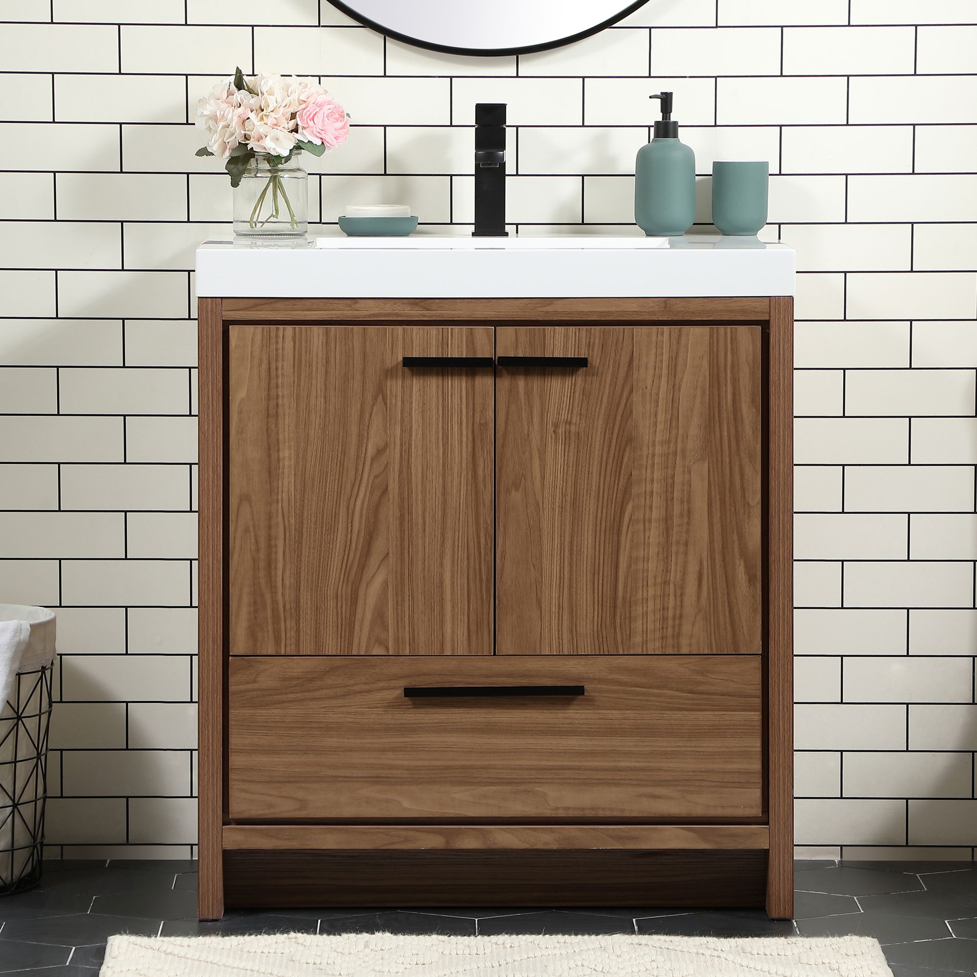 Wyatt 30"W Walnut Brown 2-Door Single Sink Bathroom Vanity