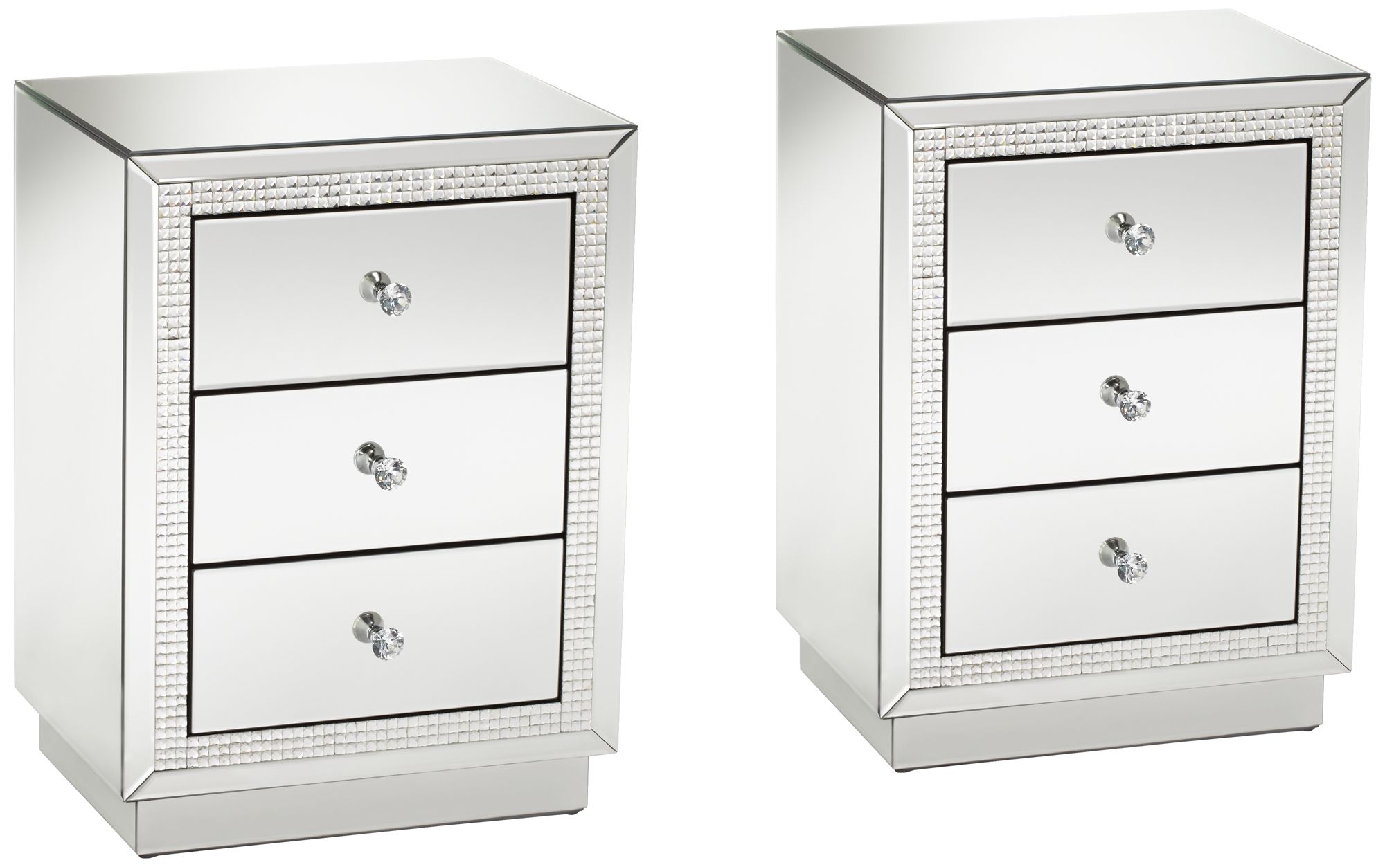 Karina 19" Wide 3-Drawer Beaded Mirrored Side Tables Set of 2
