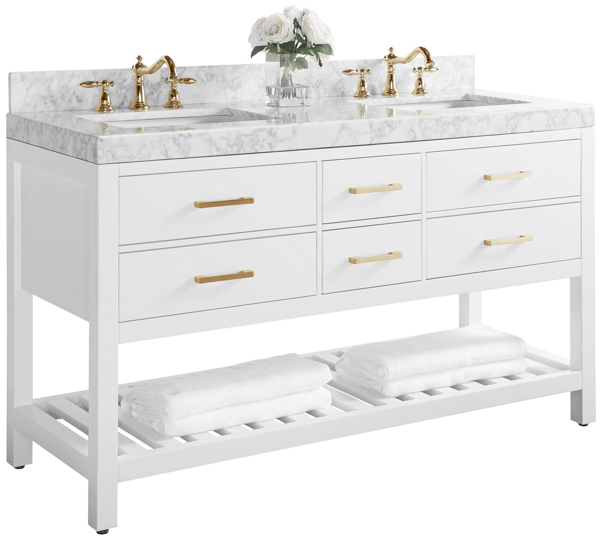 Capri 72" Wide White 3-Drawer Marble Top Double Sink Vanity