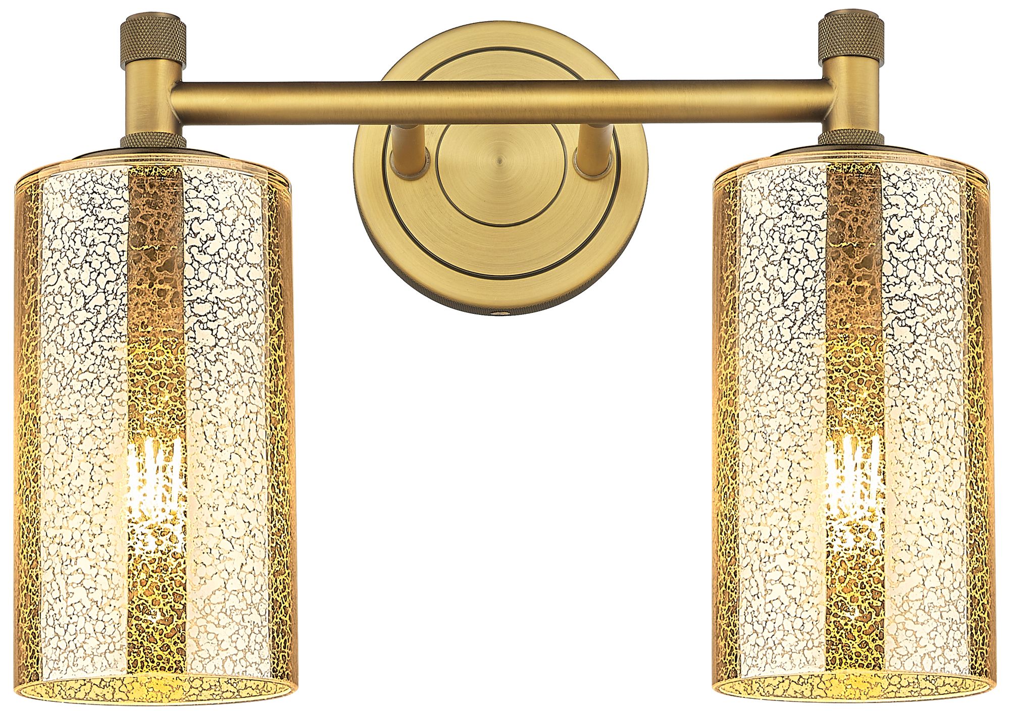 Downtown Crown Point 14"W 2 Light Brass Vanity Light w/ Mercury Shade