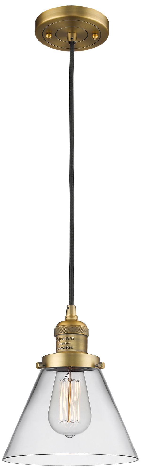 Franklin Restoration Cone 8" LED Mini Pendant - Brushed Brass - Clear Shade
