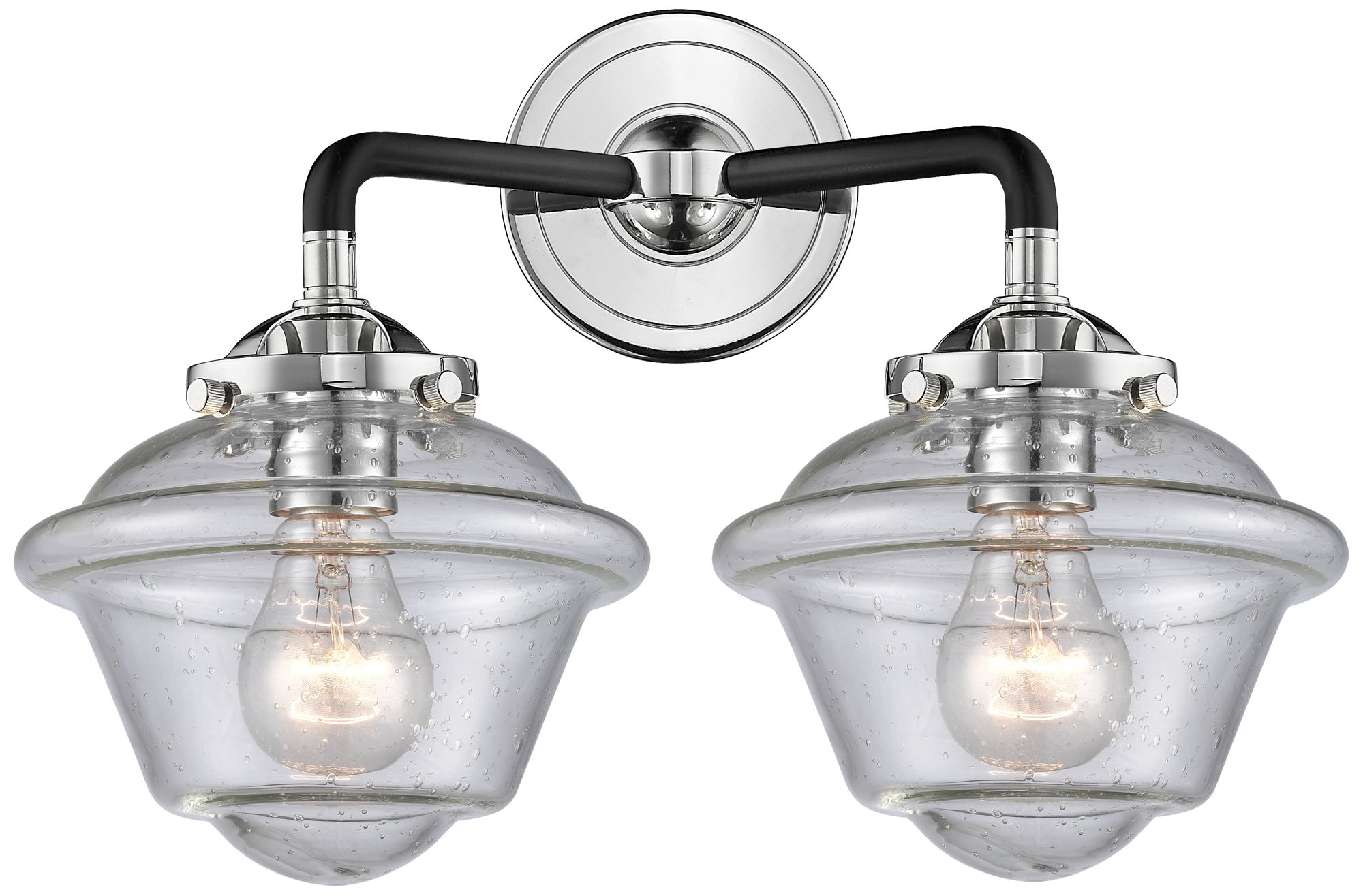 Nouveau Oxford 15.5"W 2 Light Black Nickel Bath Light w/ Seedy Shade