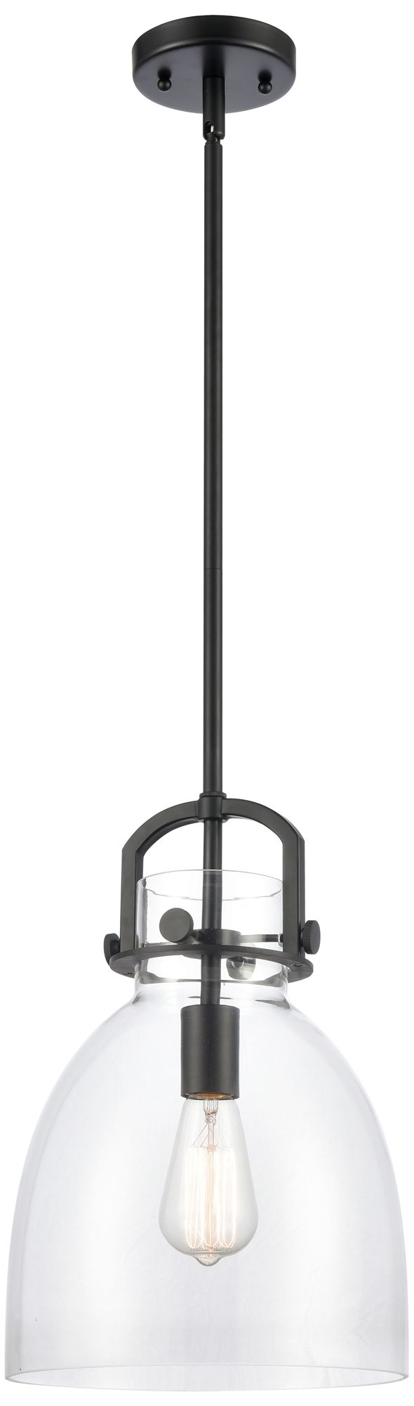 Newton Bell 10" Stem Hung LED Mini Pendant - Matte Black - Clear Shade
