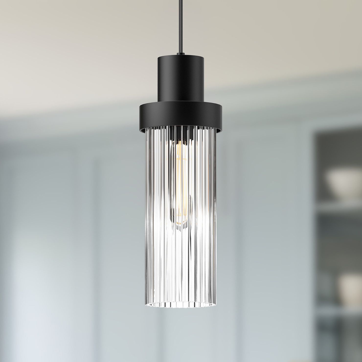 Alora Mood Kent E26 5-in Clear Ribbed Glass/Matte Black Pendant