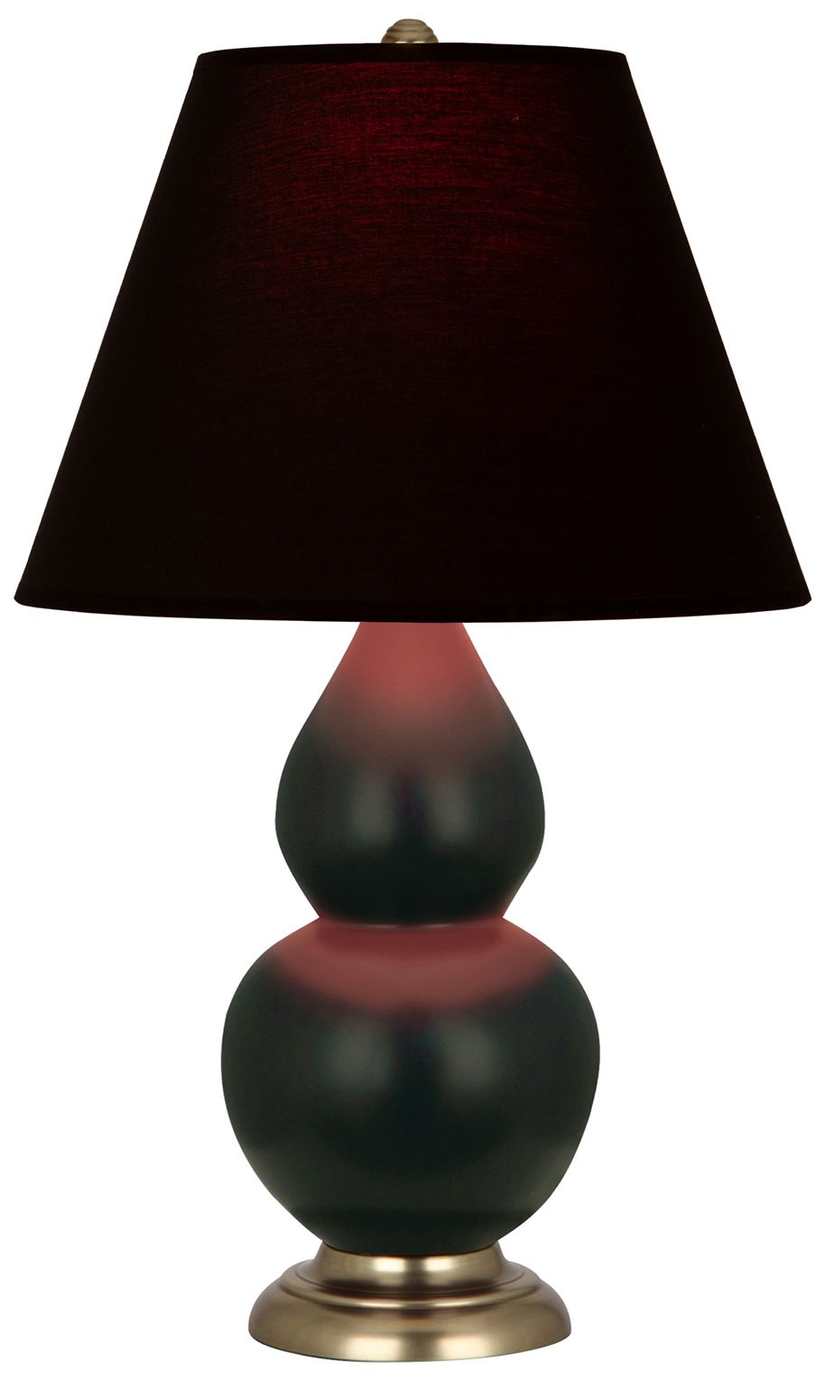 Double Gourd 23"H Matte Obsidian And Brass Lamp w/ Ink And Rose Shade