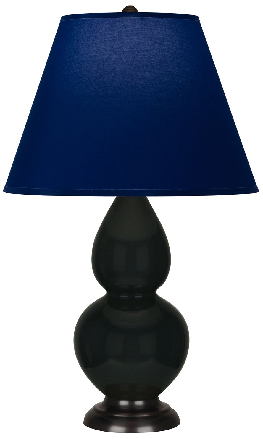 Double Gourd 23"H Obsidian And Bronze Lamp w/ Navy And Gray Shade