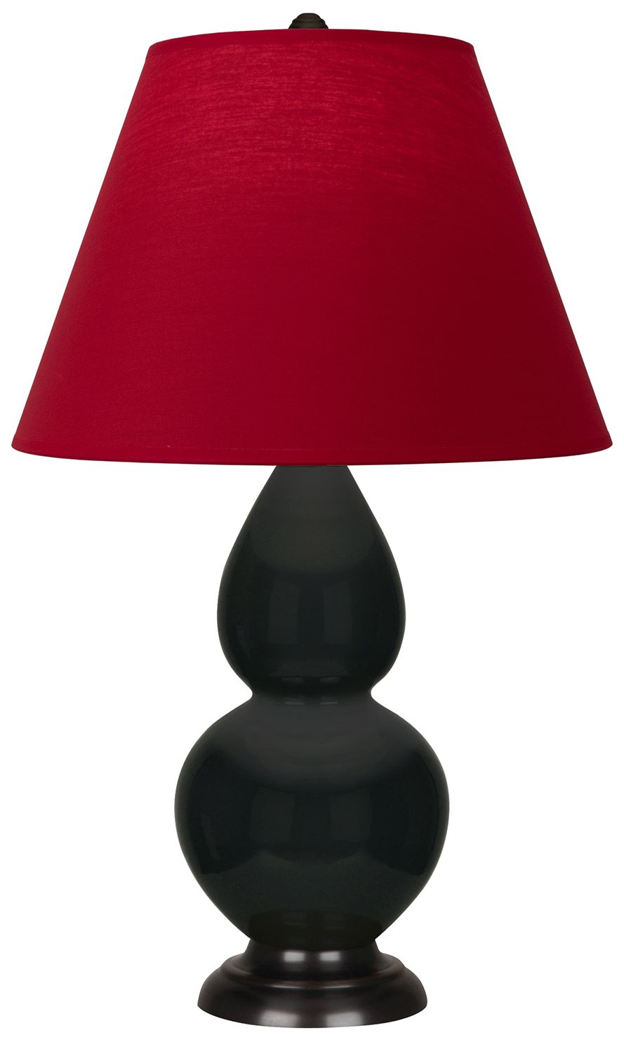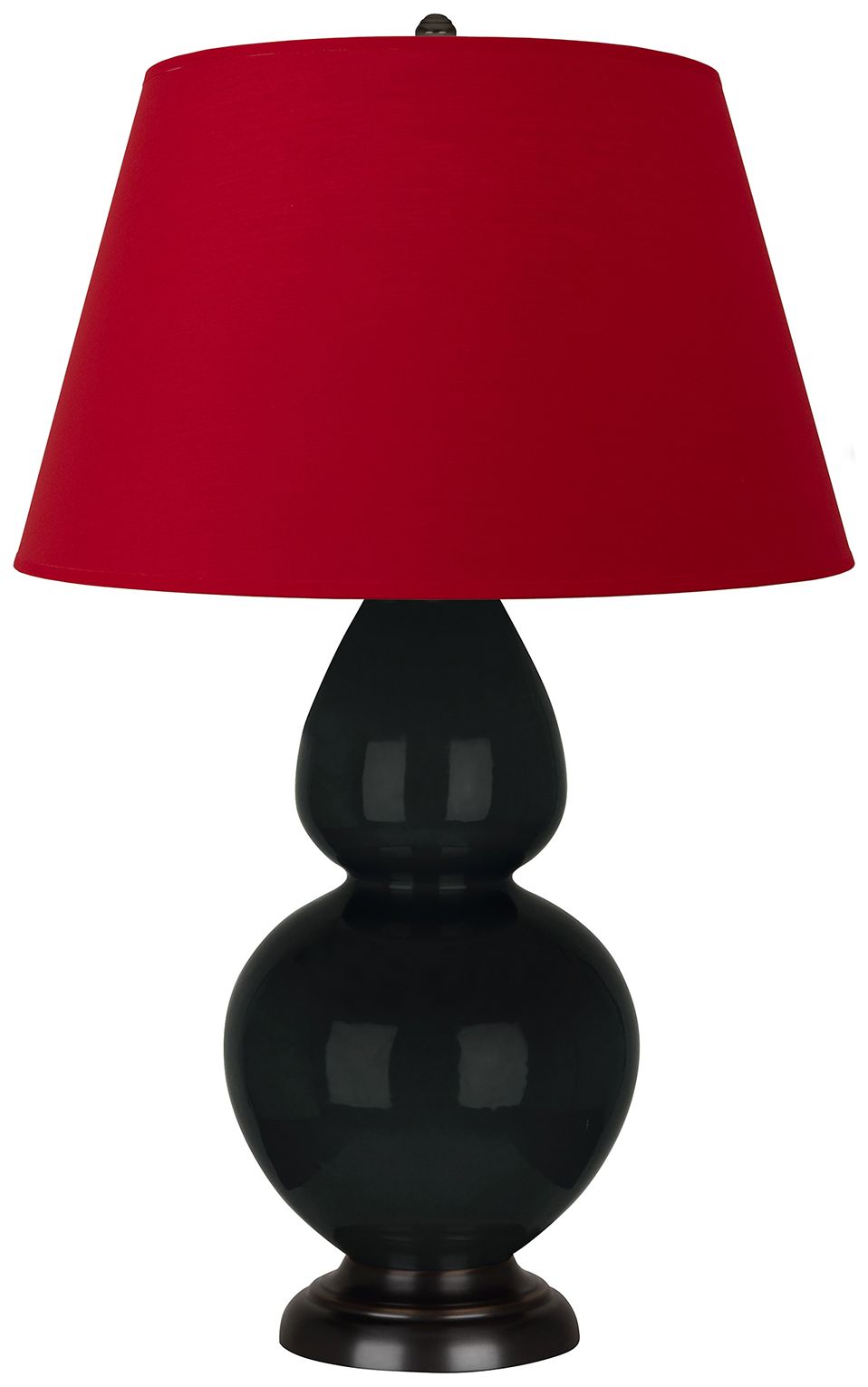 Double Gourd 31"H Obsidian And Bronze Lamp w/ Black And Red Shade