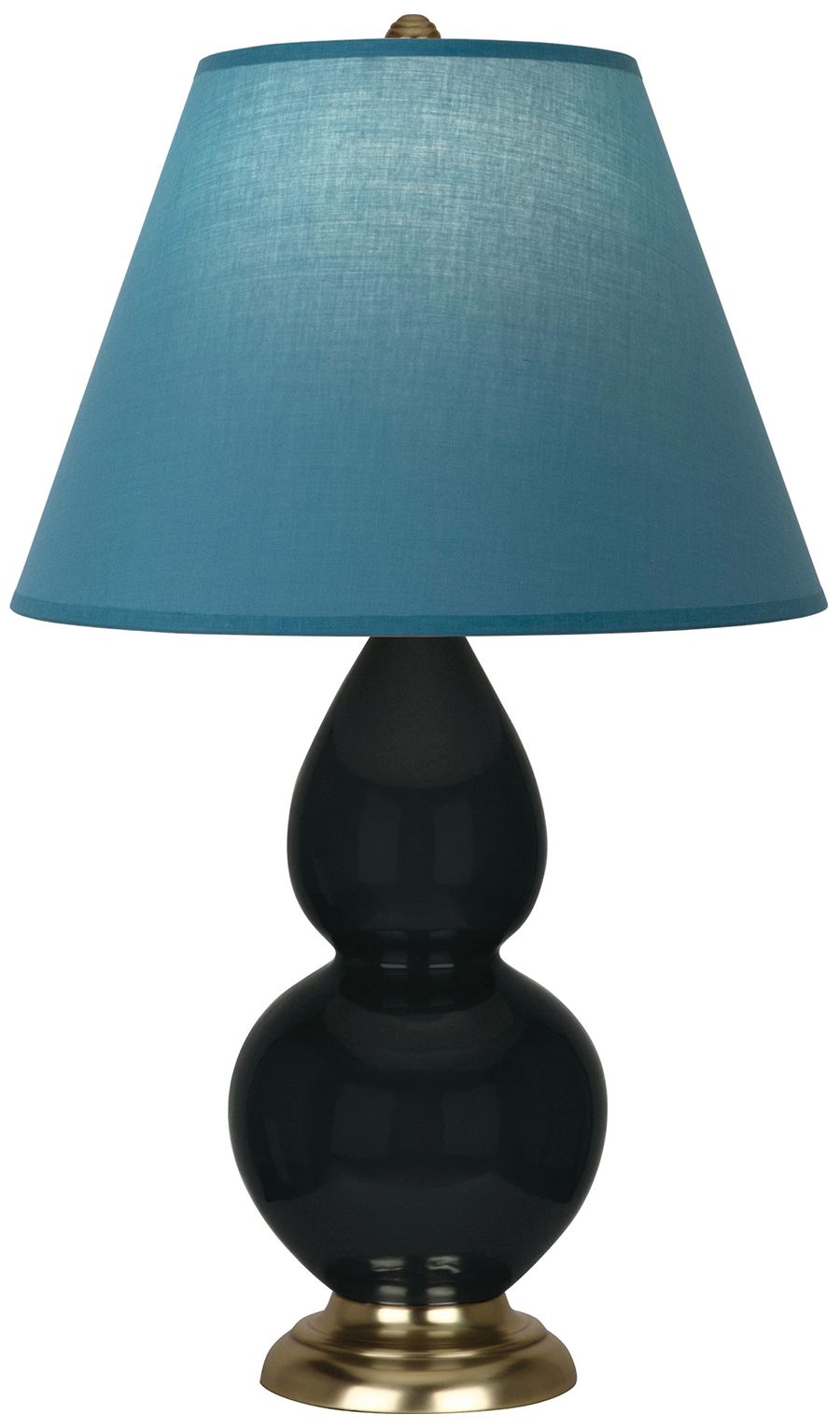 Double Gourd 23"H Obsidian And Brass Lamp w/ Bright Blue And Gray Shade