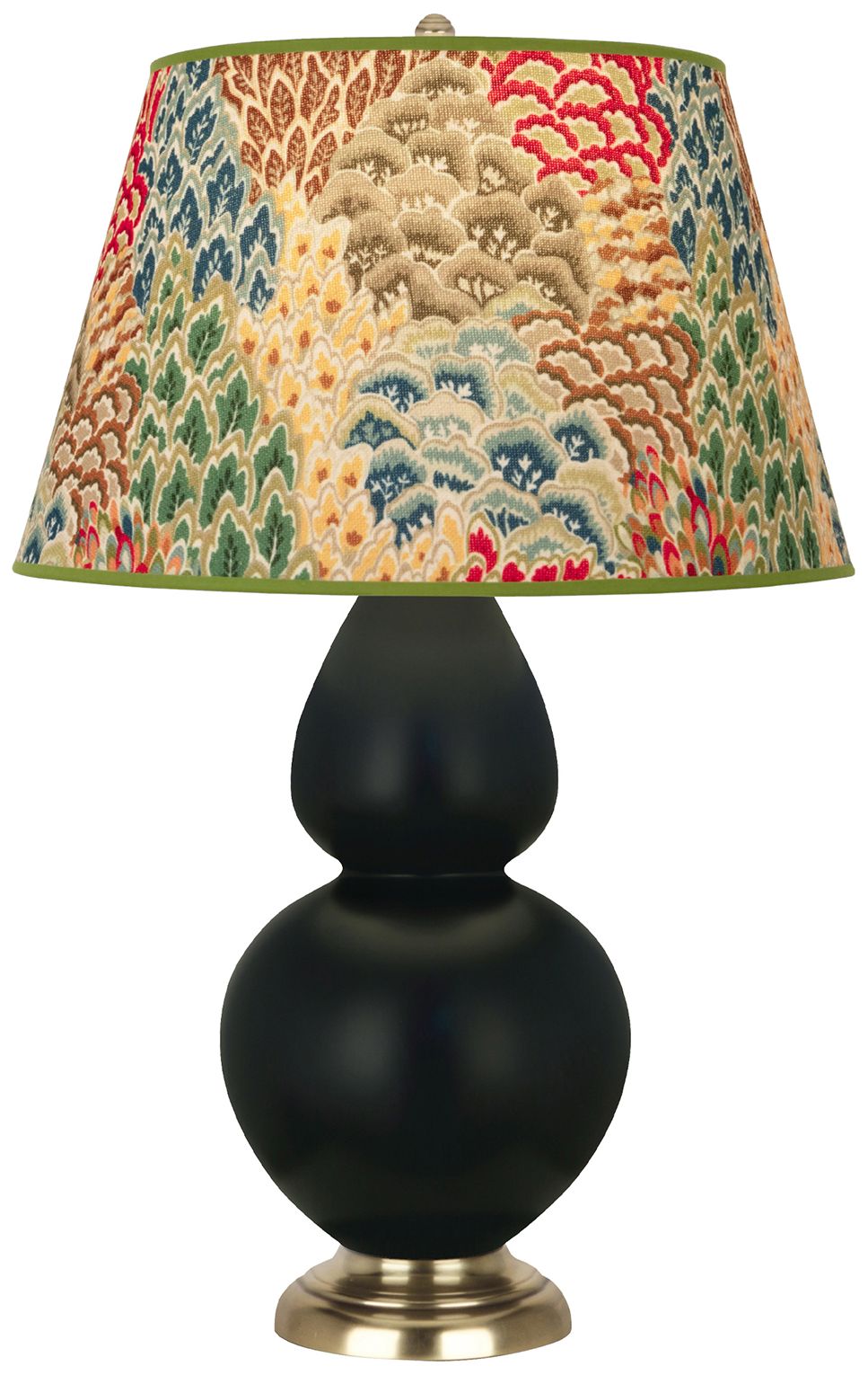 Double Gourd 31"H Matte Obsidian And Brass Lamp w/ Fall Floral Shade