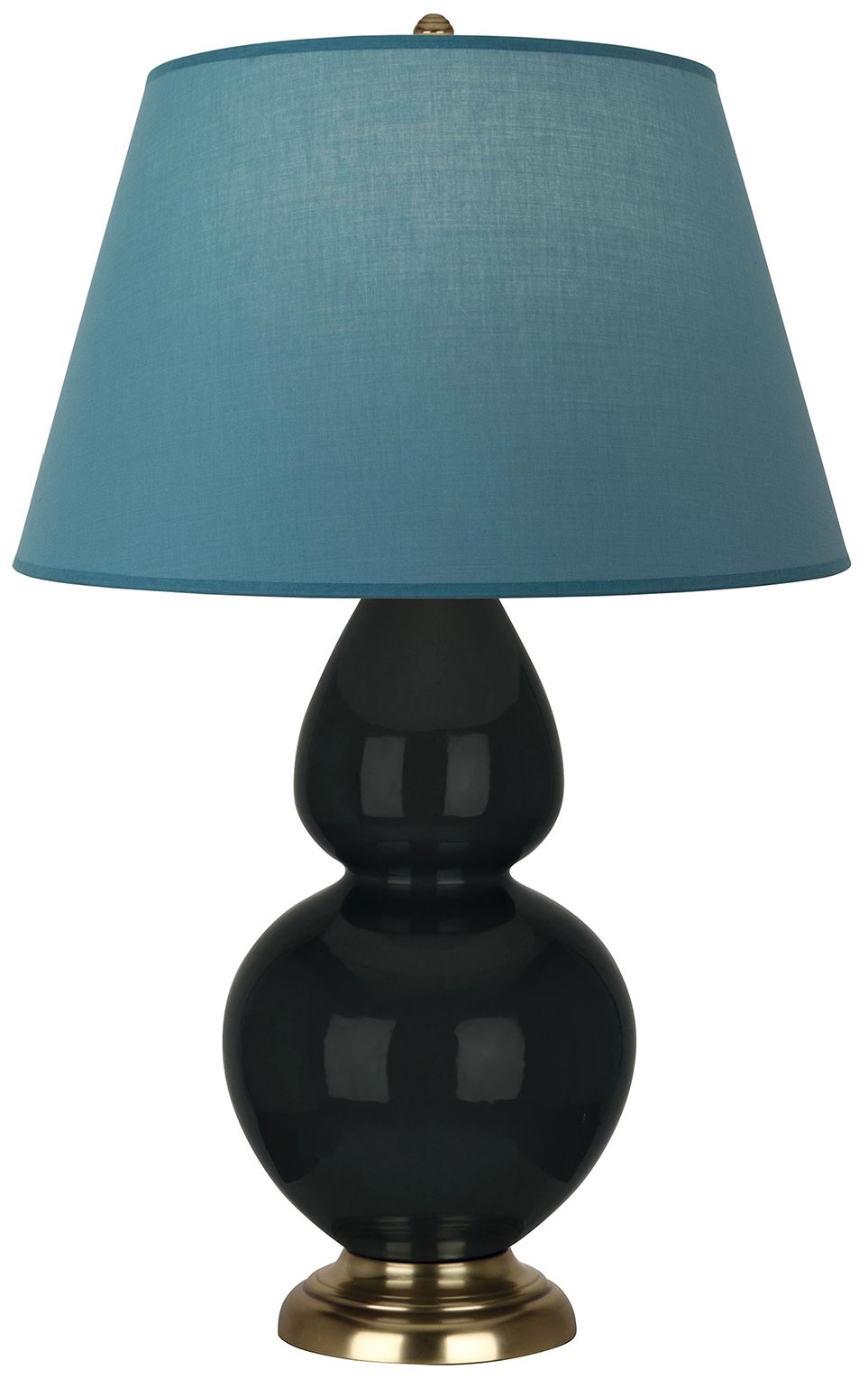 Double Gourd 31"H Obsidian And Brass Lamp w/ Bright Blue And Gray Shade