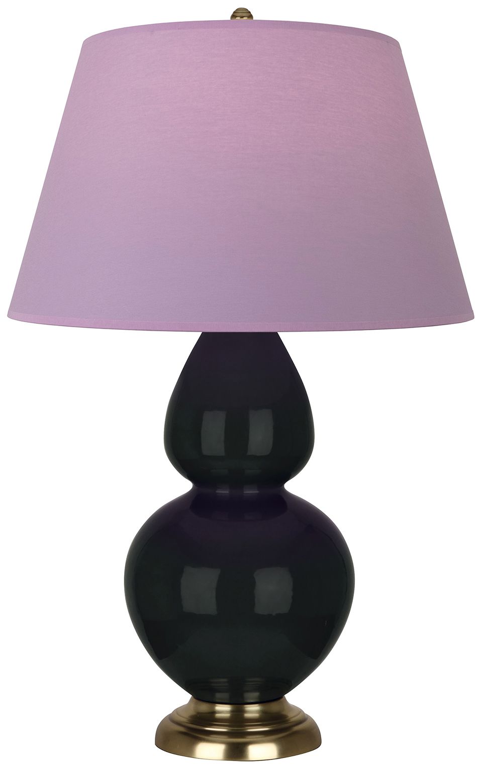 Double Gourd 31"H Obsidian And Brass Lamp w/ Lavender And Plum Shade