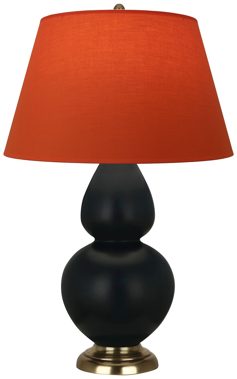 Double Gourd 31"H Obsidian And Brass Lamp w/ Tangerine And Taupe Shade
