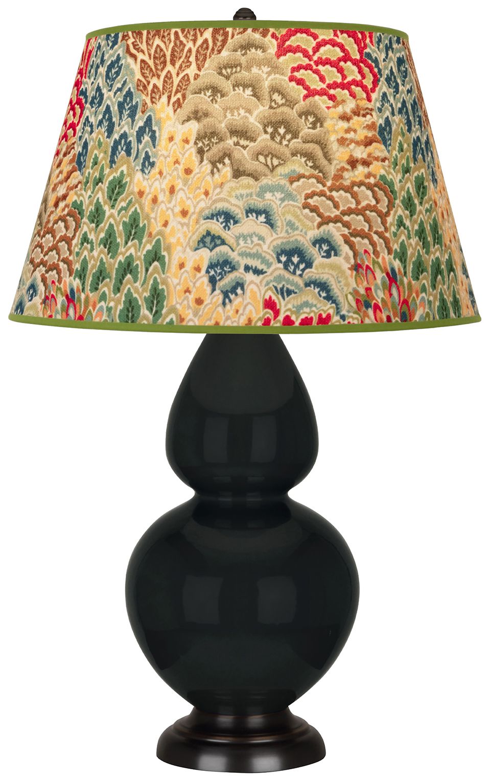 Double Gourd 31"H Obsidian And Bronze Table Lamp w/ Fall Floral Shade