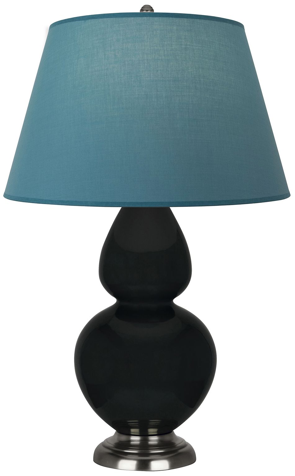 Double Gourd 31"H Obsidian And Silver Lamp w/ Bright Blue And Gray Shade