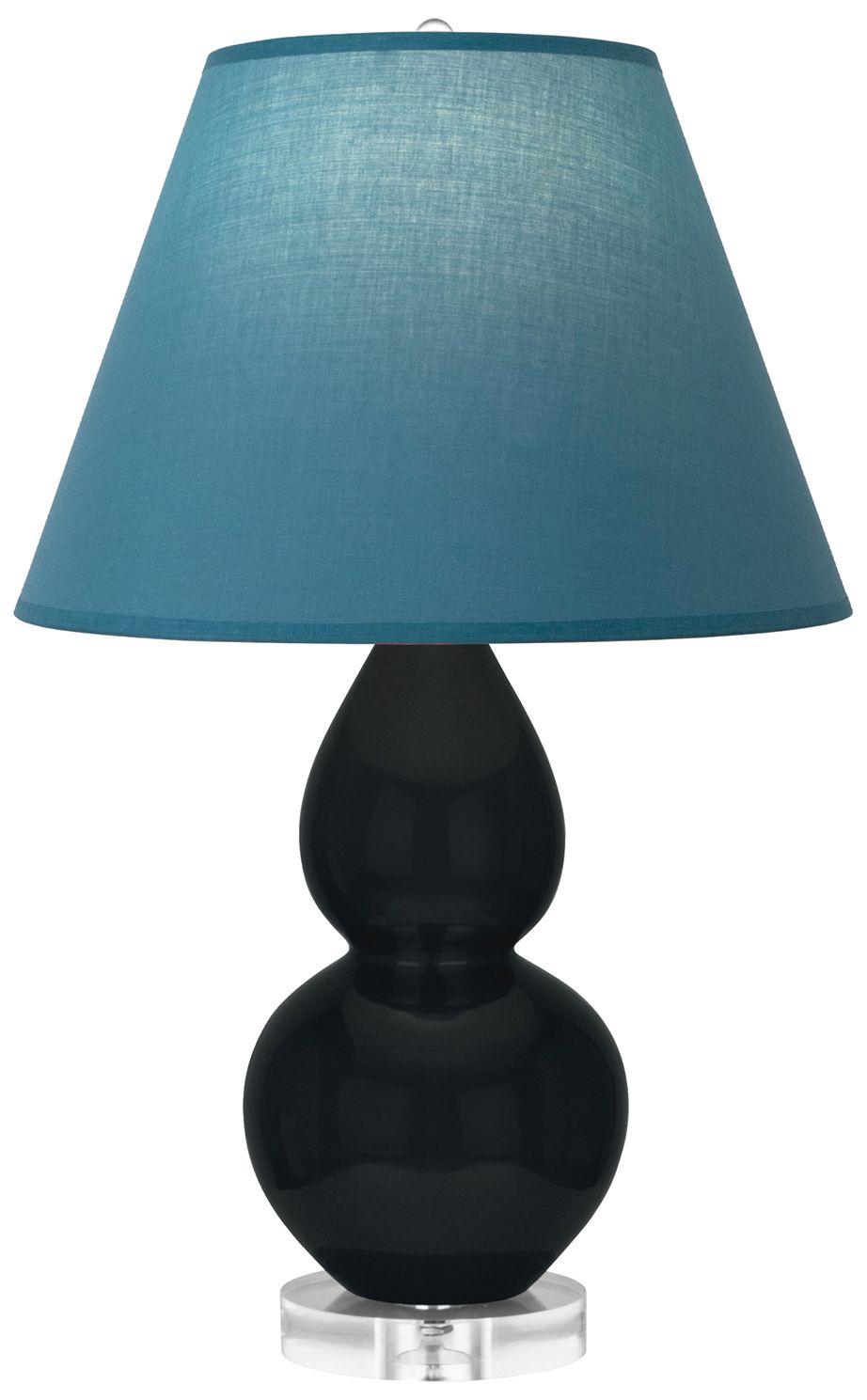 Double Gourd 22"H Obsidian And Lucite Lamp w/ Bright Blue And Gray Shade