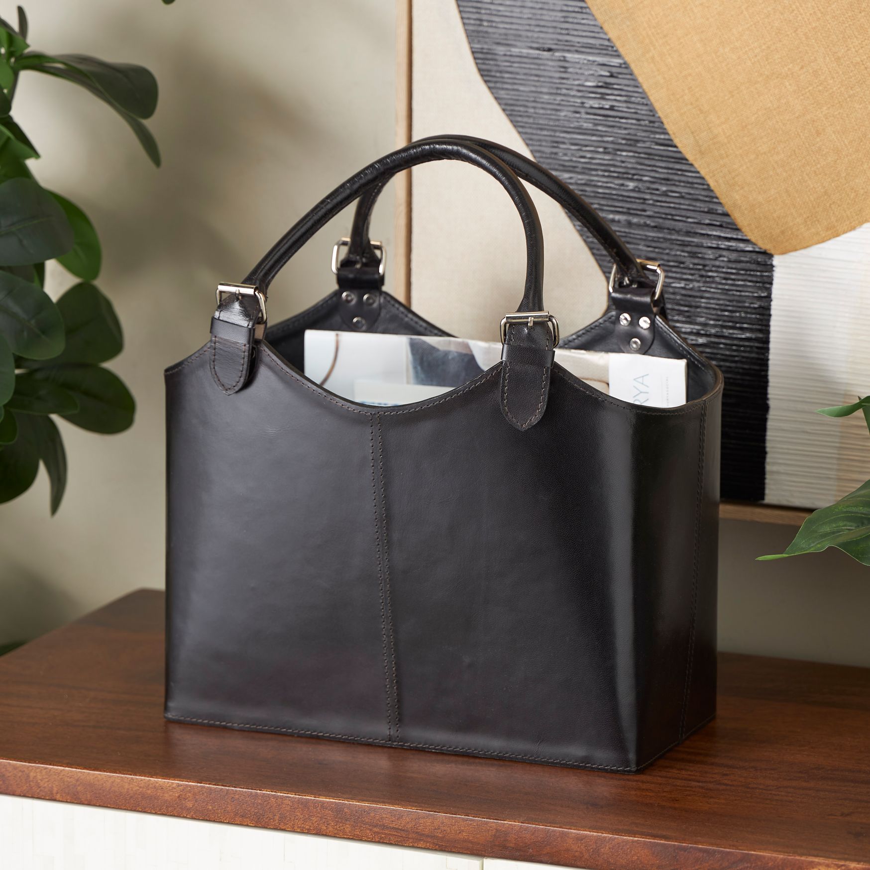 Black Leather Modern Magazine Holder, 16" x 10" x 18"