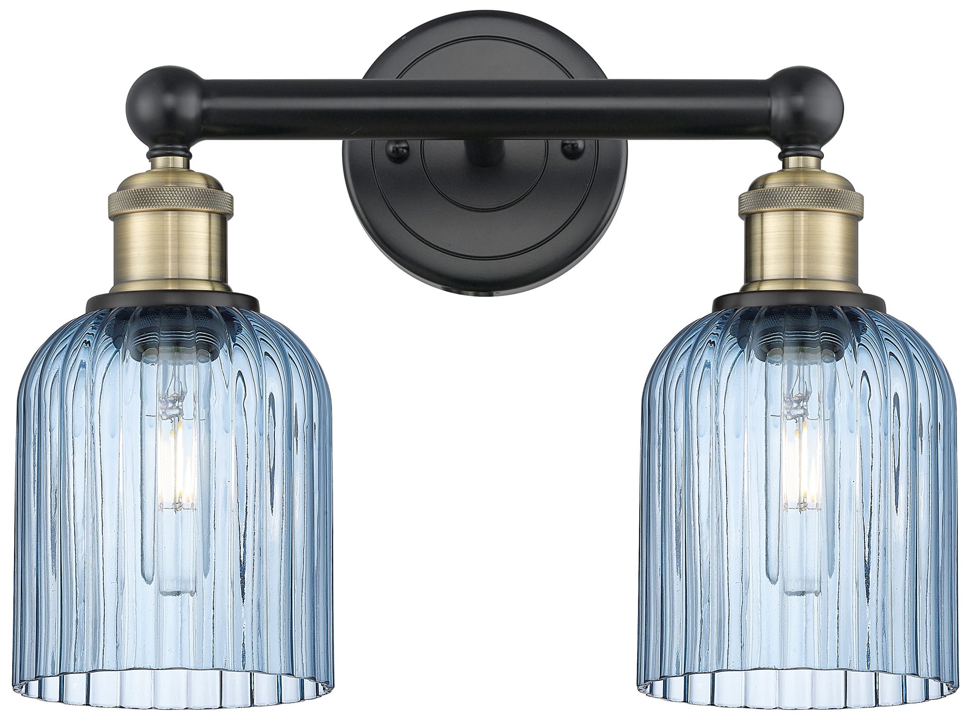 Edison Bridal Veil 2 Light 14" Bath Vanity Black Brass Princess Blue Shade