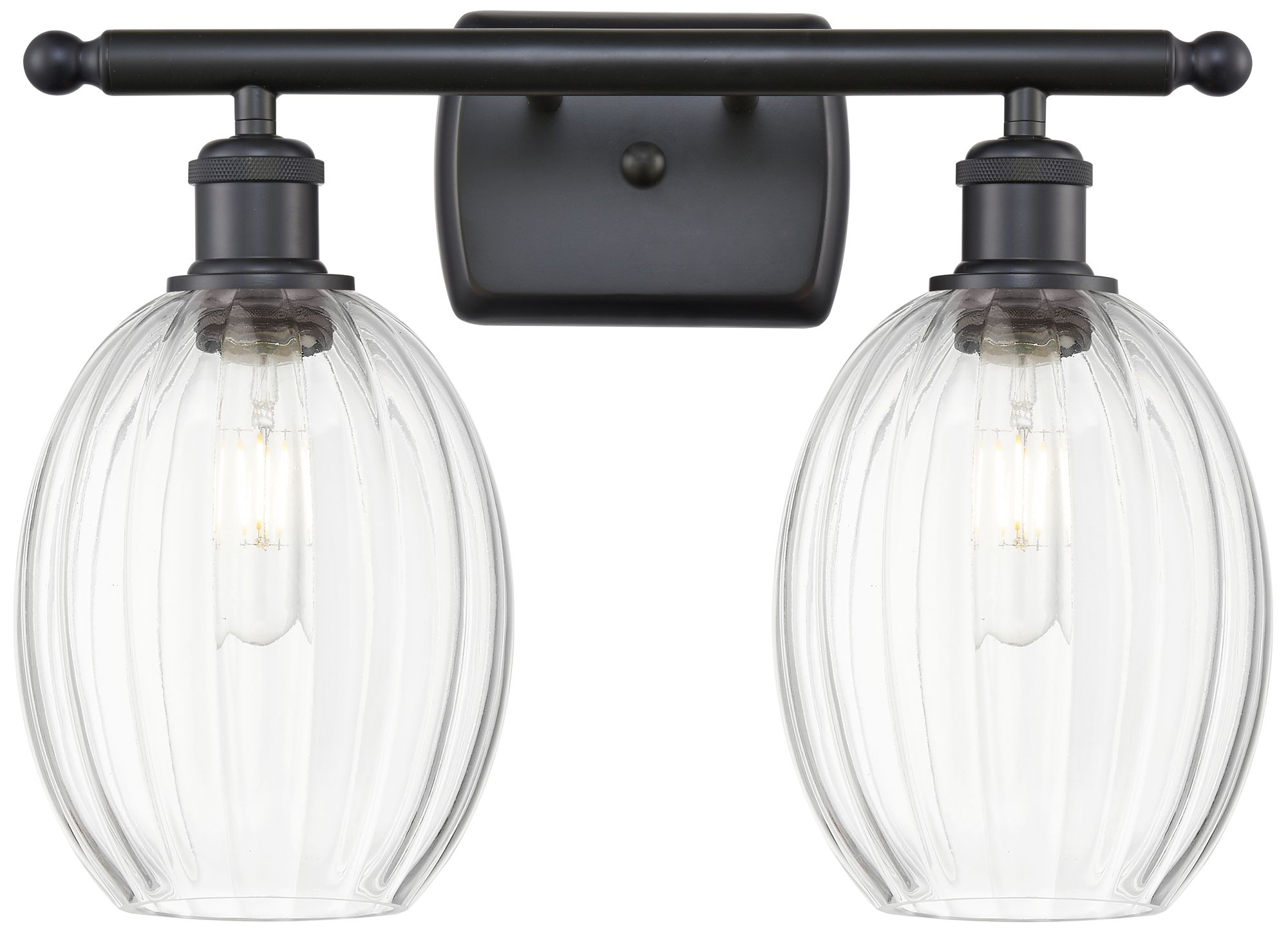 Eaton 14.5"W 2 Light Black Antique Brass Bath Vanity Light With Clear