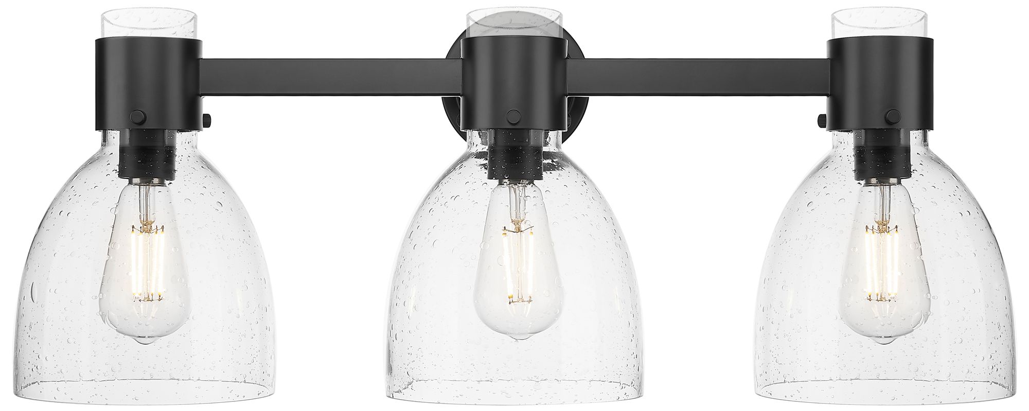 Downtown Lawton Bell 24"W 3 Light Black Vanity Light w/ Seedy Shade