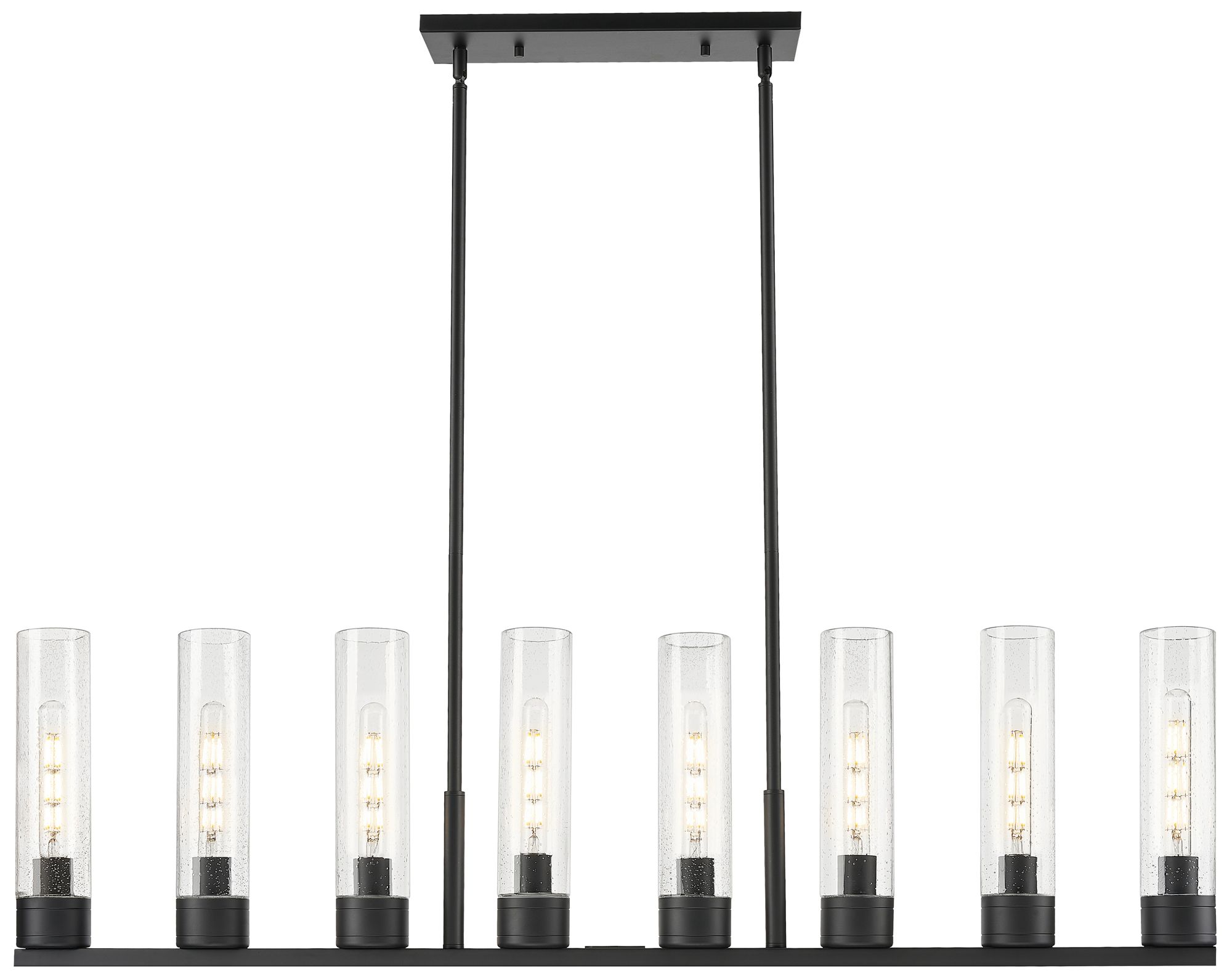 Boreas 48"W 6 Light Matte Black Stem Island Light With 11" Seedy Shade