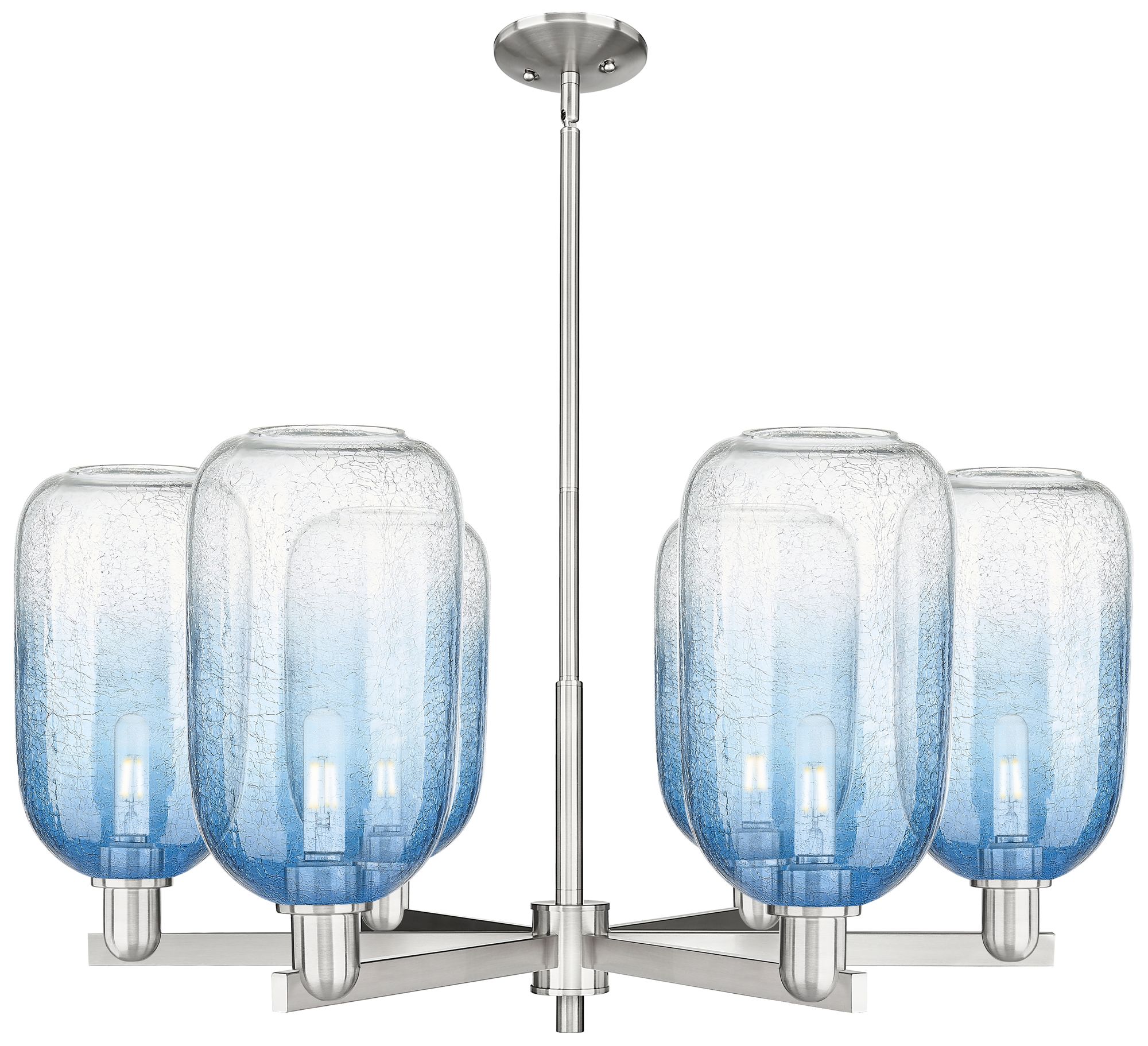 Brookhaven Cloche 24"W 6-Lt Satin Nickel Stem Chandelier w/ Sapphire Shade