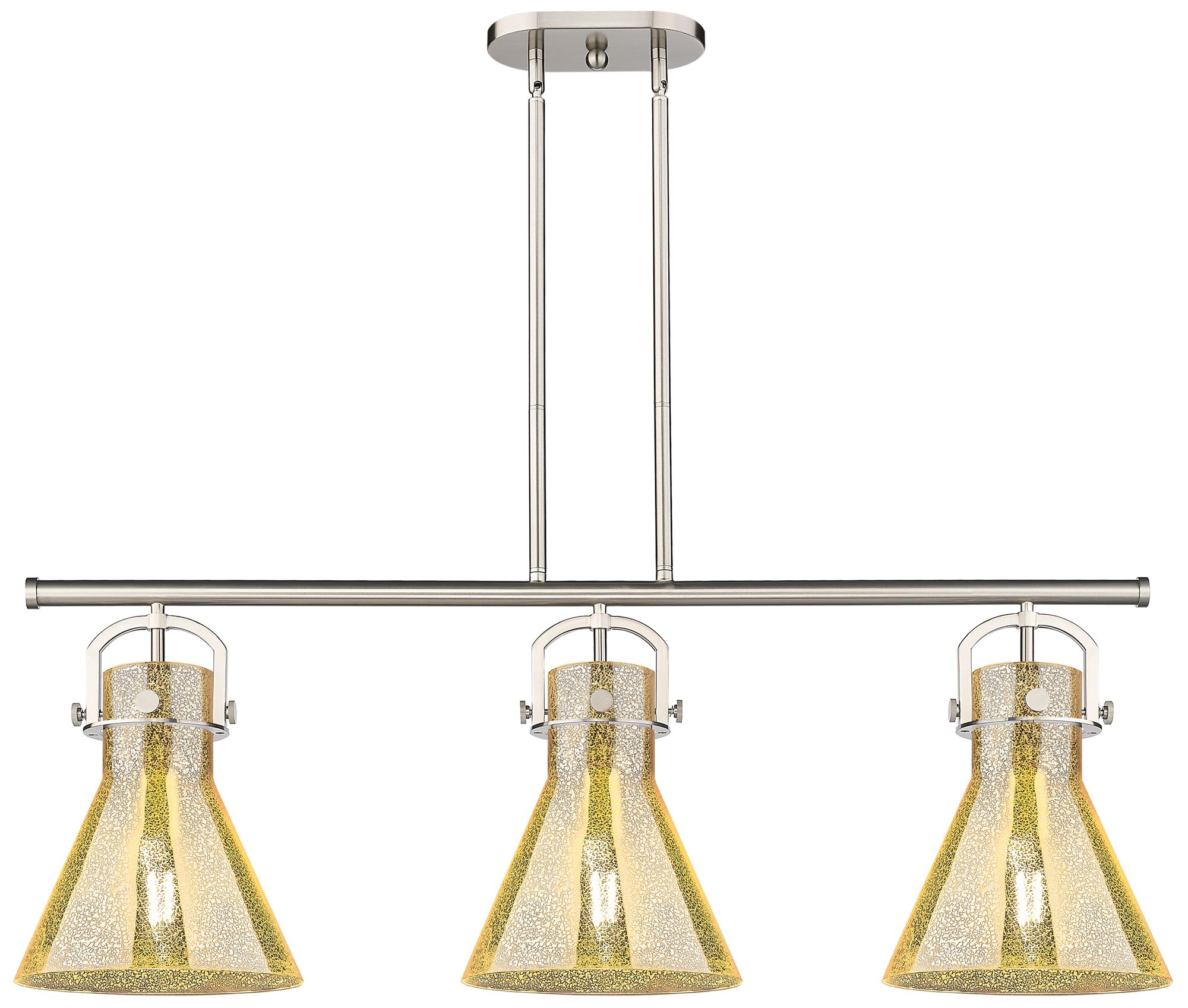 Newton Bell 42"W 3 Light Nickel Stem Island Light w/ Mercury Shade